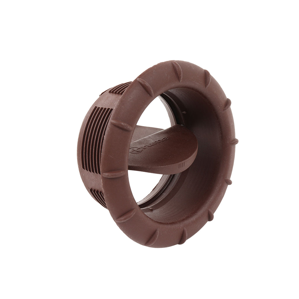 Truma Warmluftauslass in Braun, passend für Warmluftverteilerrohre in 65 mm Durchmesser. Die Luftmenge lässt sich stufenlos durch die Auslassklappe regeln. Bestehend aus Rosette, Luftklappe und Druckfeder.