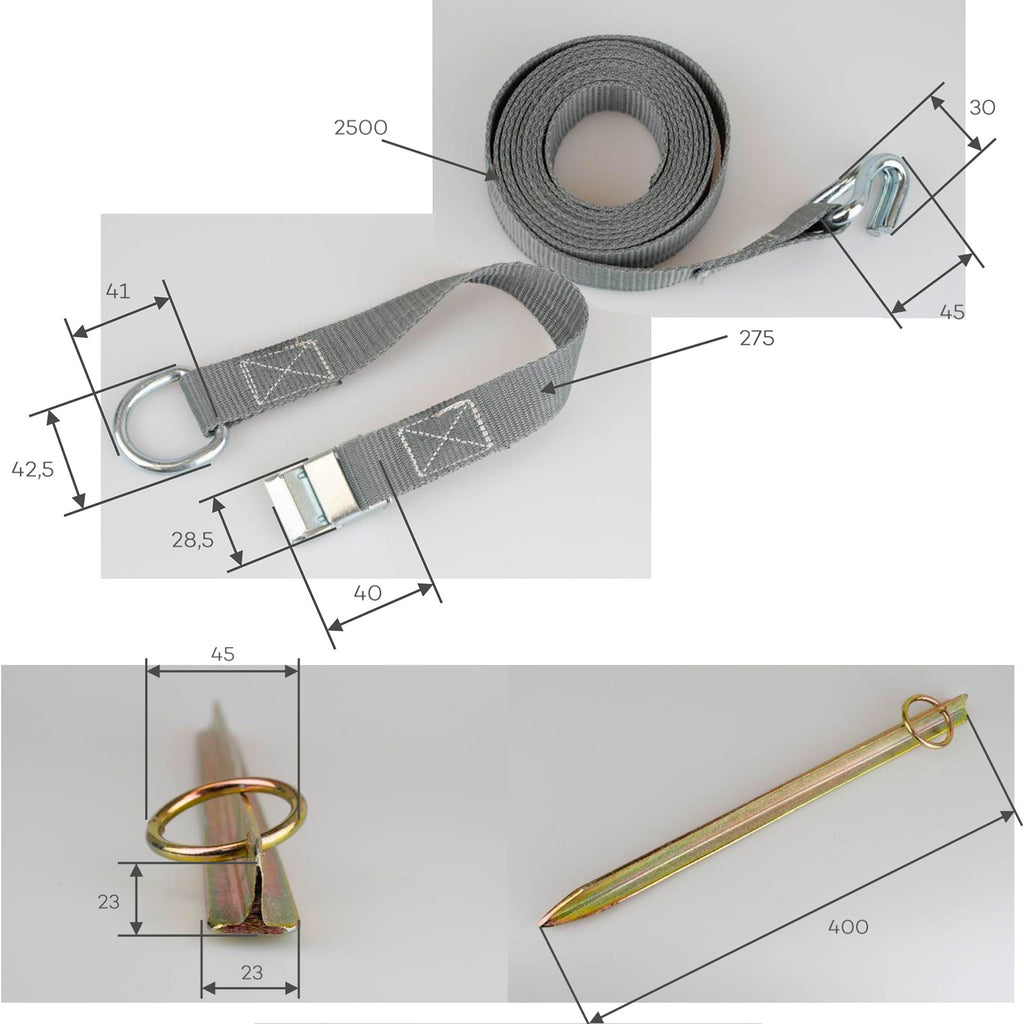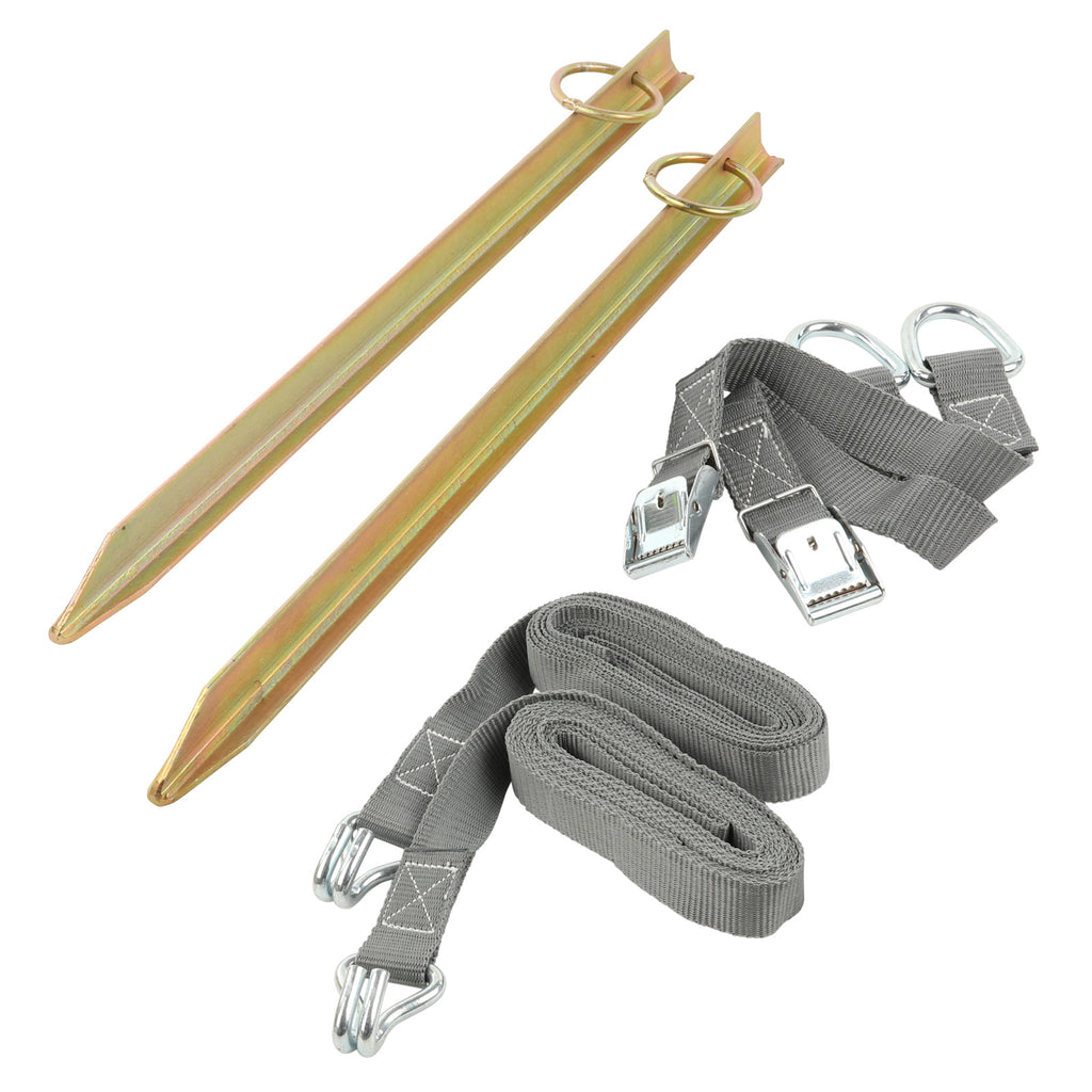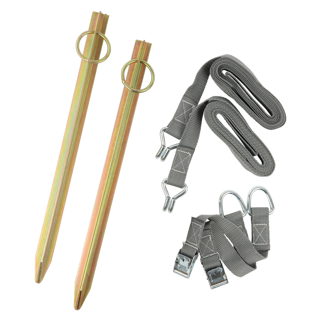 Das Abspannset ist die perfekte Lösung, um dein Vorzelt oder deine Markise abzusichern und vor Sturm zu schützen.