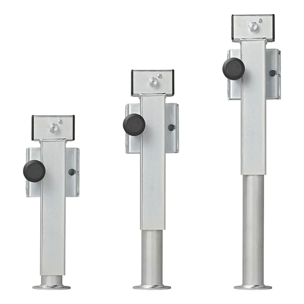 Die Anhängerstütze eignet sich ideal als zusätzliche Stütze für Anhänger (unteranderem für Hapert und Henra) und gewährleistet eine stabile Positionierung des Anhängers, unabhängig vom Untergrund. Nach der Montage am Anhänger, ist der Stützfuß drehbar zum Hochklappen. Mit Schnellarretierung: nur den Kunststoffknopf ziehen, Stütze drehen, loslassen - fertig!