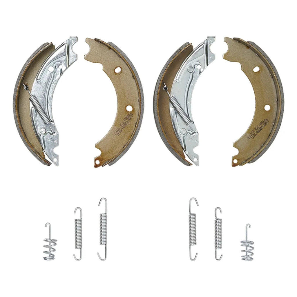 - je Satz: 4x Bremsbacken, 4x Druckfedern, 4x Haltebleche, 2x Zugfedern