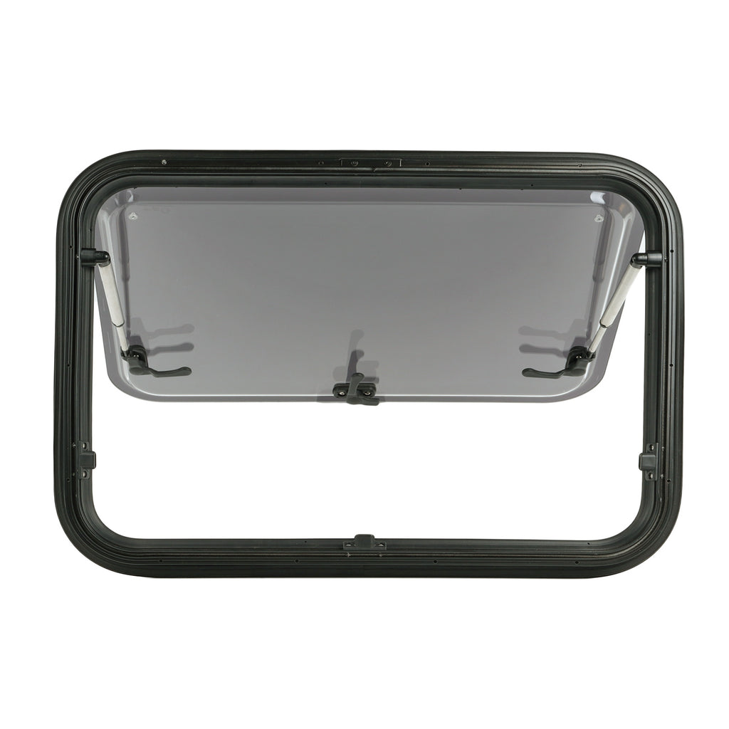 Das wamovo Ausstellfenster aus Acrylglas ist ein echter Hingucker! Die Scheibe schließt flächenbündig mit dem hochwertigen, schwarzen Aluminiumrahmen ab. Das Fenster lässt sich über den Teleskopaussteller verstellen. Die getönte doppel-acrylverglaste Scheibe isoliert hervorragend.