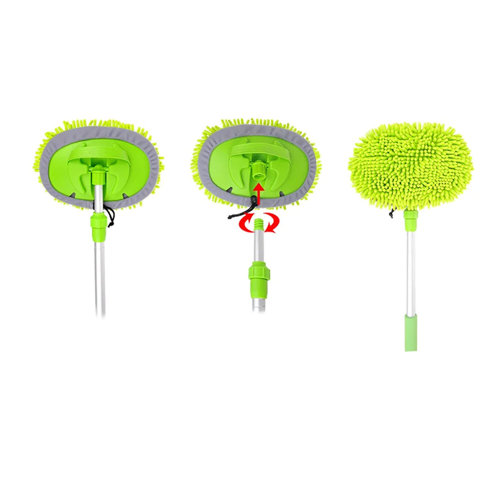 Die Teleskopwaschbürste eignet sich perfekt zum Reinigen von Autos, Kastenwagen, Wohnwagen und Wohnmobilen, aber auch für Arbeiten rund ums Haus und im Garten oder Wintergarten. Der weiche Überzug kann einfach abgemacht und gereinigt werden. Für eine körpernahe Reinigung kann die Bürste ganz einfach vom Teleskopstiel abgeschraubt werden.