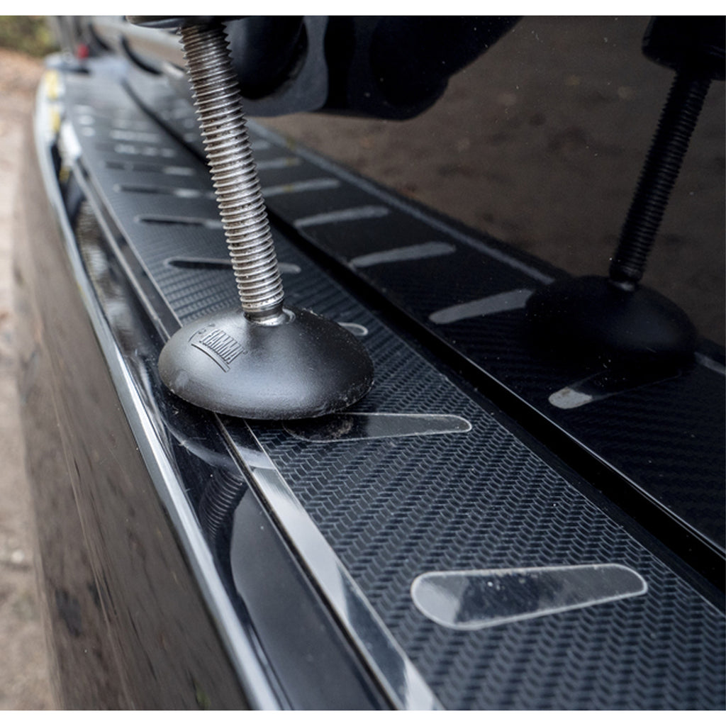 Carbest Ladekantenschutz ist aus gebürstetem Stahl. Schützt vor Beschädigungen beim Be- und Entladen. Durch das auf der Rückseite angebrachte 3M® Klebebandes, lässt sich die Schutzleiste sicher an der Heckstoßstange befestigen.
