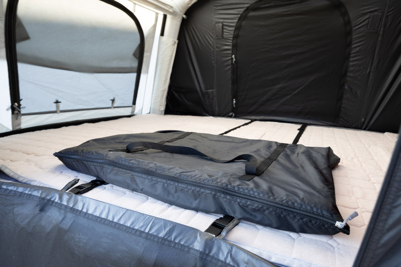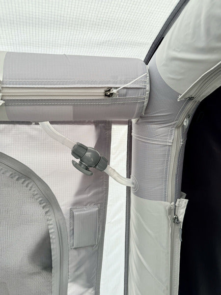 Du willst hoch hinaus? Dann ist unser aufblasbares Dachzelt genau das Richtige für dich! Einfach die Aluminium-Dachplattform aufs Auto montieren, die Matratze per Keder einziehen, das Zelt fixieren und mit der mitgelieferten Pumpe aufpumpen – fertig ist dein mobiles Schlafzimmer mit bester Aussicht! 🏕️✨