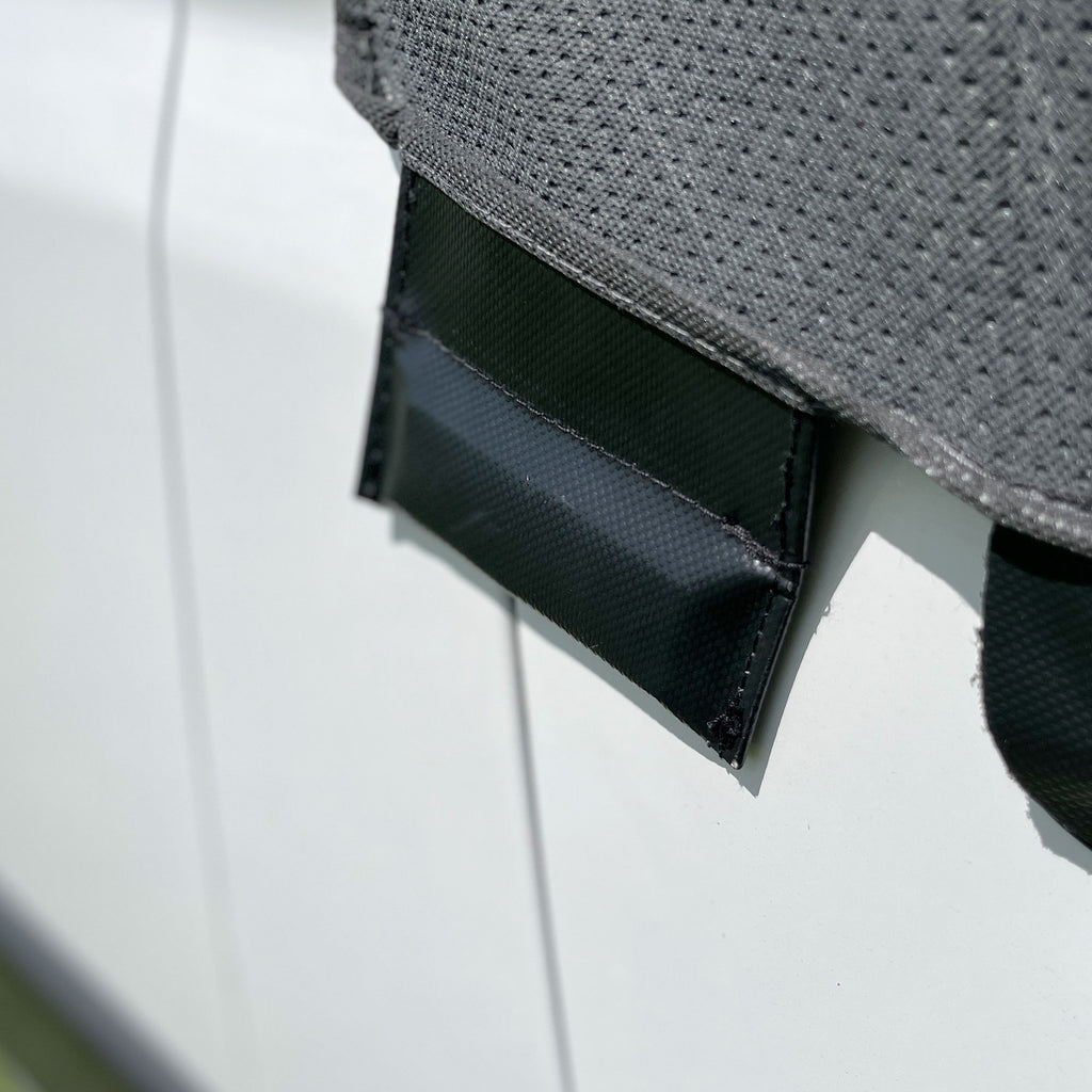 Wer will nicht stundenlanges Hantieren vermeiden, wenn es wirklich mal schnell gehen muss? Die hochwertige deiwo® Bugschutzplane anzubringen ist kinderleicht. deiwo® Frontschutzplanen sind serienmäßig mit einem “Quick Fix Mount” ausgestattet. Sie wird lediglich in der Mitte der Windschutzscheibe ausgebreitet und ausgestrichen, damit sie zunächst überall aufliegt. Danach können die eingefassten „Türtaschen” über die obere Ecke der Fahrzeugtür gestülpt werden. Die Klettverschlüsse werden unter den Außenspiegeln zusammengeführt und miteinander verbunden. Expander und Integrierte Magnettaschen dienen zur zusätzlichen Fixierung und exakten Ausrichtung.