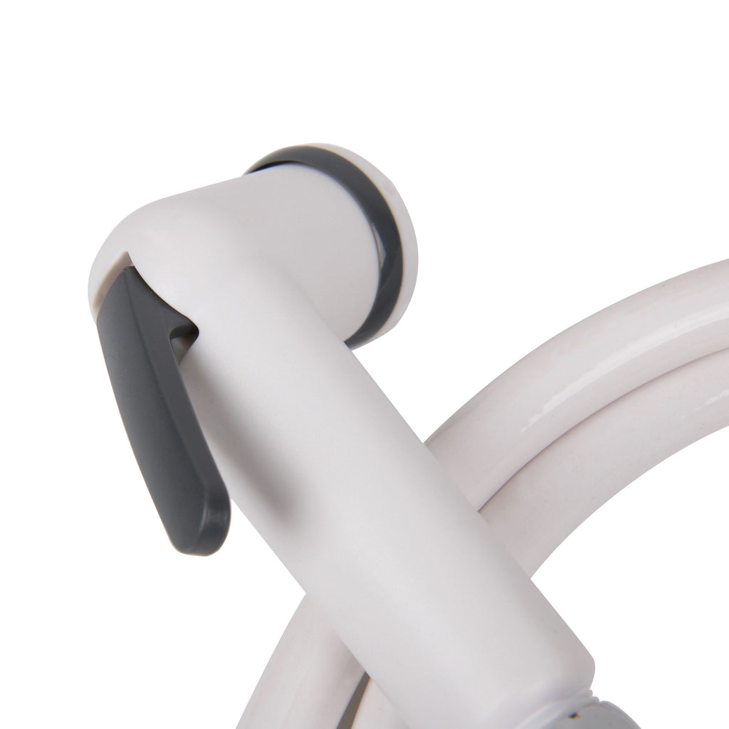 Vielseitig nutzbares Duschset in schlichtem weiß. Ideal auch als Campingutensil für die Nutzung unterwegs.