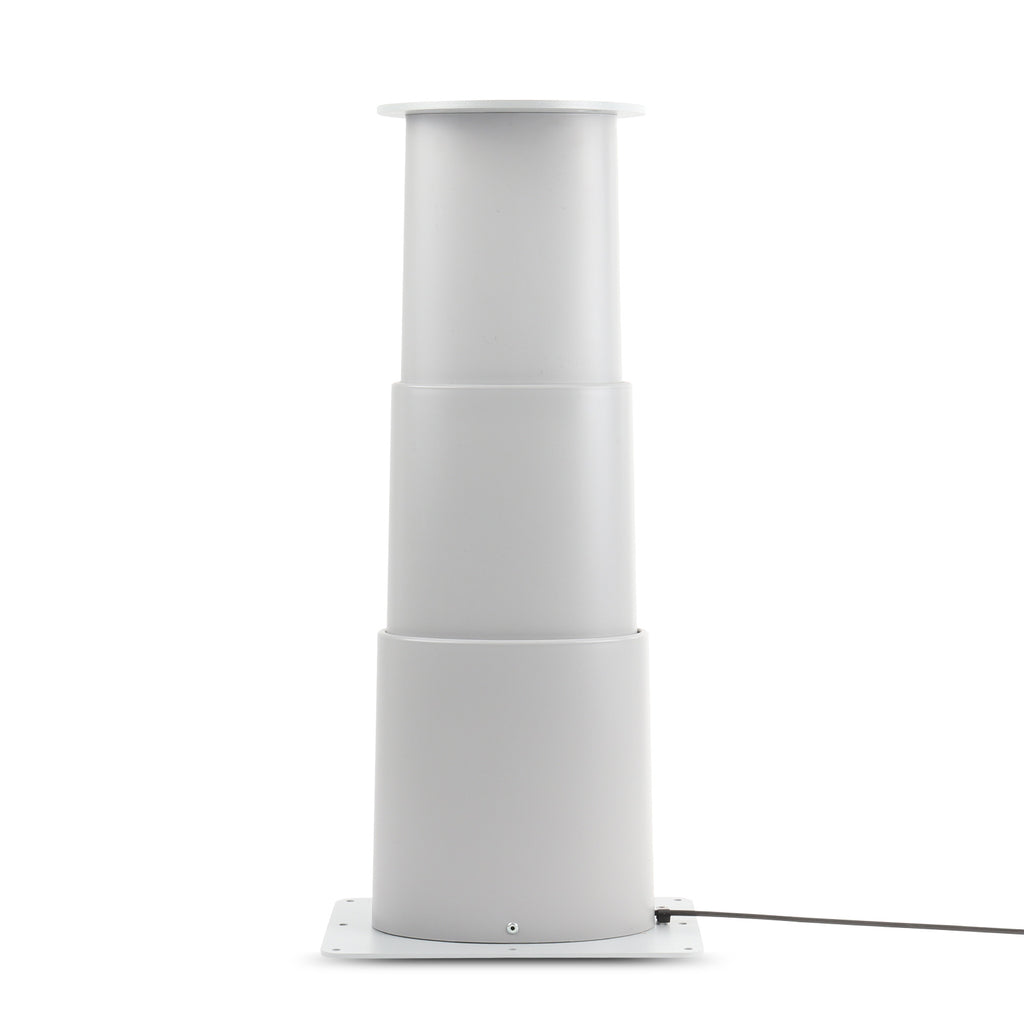 Einsäulen-Hubtischgestell mit stufenloser Höhenverstellung von 310 - 670 mm. Fußteller am Boden aufschraubbar. Gestell mit hochwertiger, robuster Pulverbeschichtung in elegantem Silbergrau.