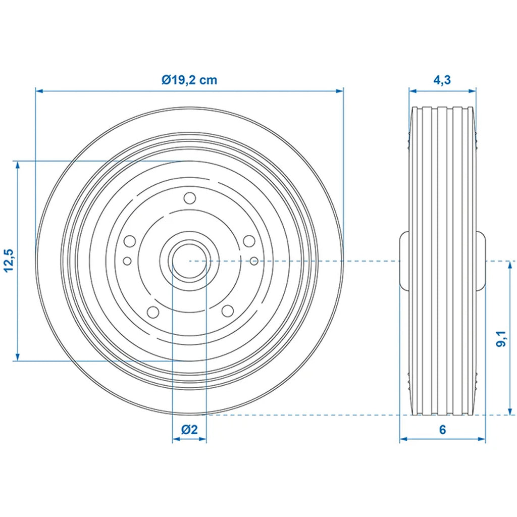 Vollgummi Ersatzrad 200 x 50 mm für deinen Anhänger oder Wohnwagen mit Metallfelge. Das Ersatzrad ist universal passend und kann mit nur wenigen Handgriffen gewechselt werden. Mit einem Nettogewicht von rund 1,5 kg und einem Durchmesser von ca. 50 mm findet das Stützrad an fast allen gängigen Stützrädern seinen Einsatz.