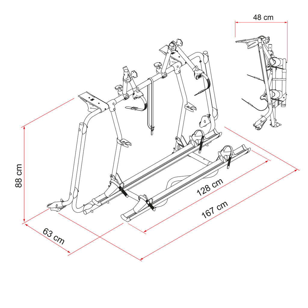 Auch in puncto Sicherheit gibt es eine Neuerung: Das neue Design des Auflagebügels sorgt gemeinsam mit der neuen zweiteiligen vierten Schiene, für optimale Sichtbarkeit der dritten Bremsleuchte bei Verwendung von vier Schienen ohne Beladung mit Fahrrädern.