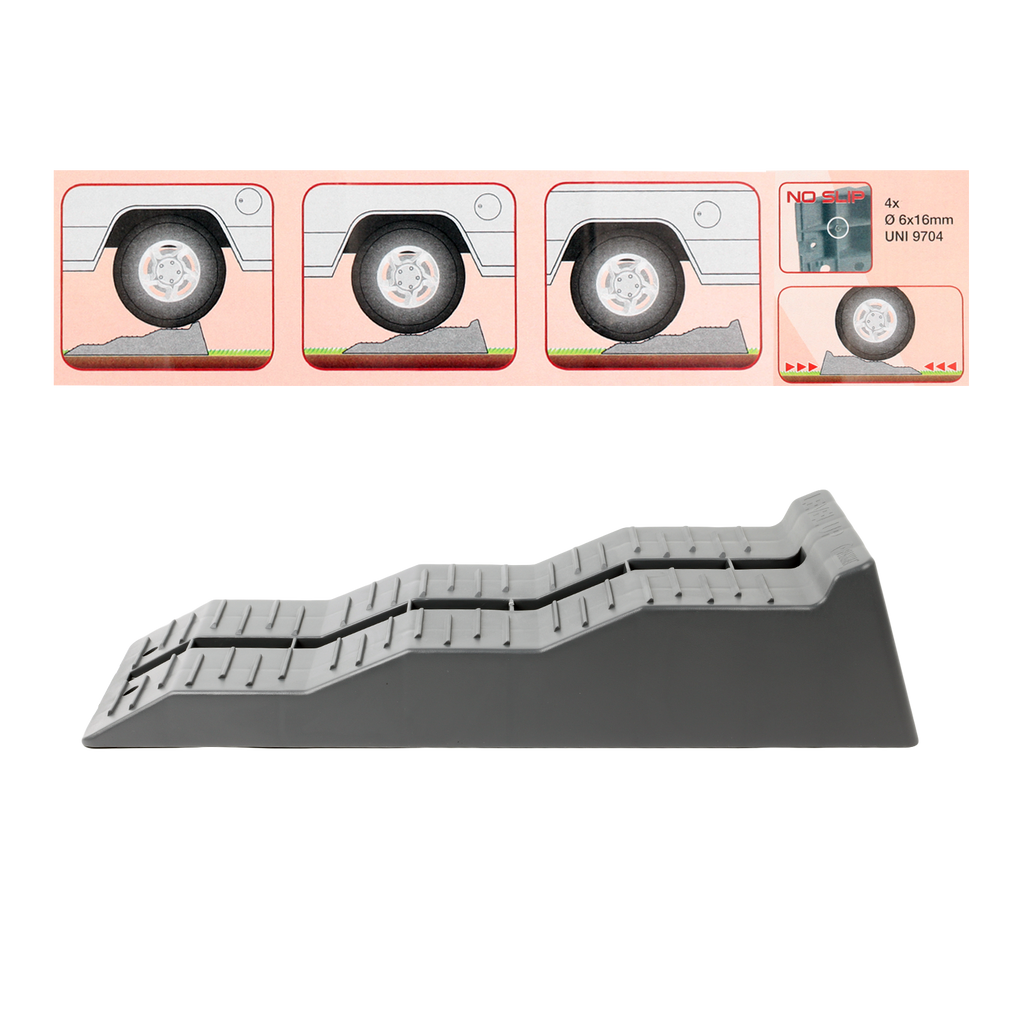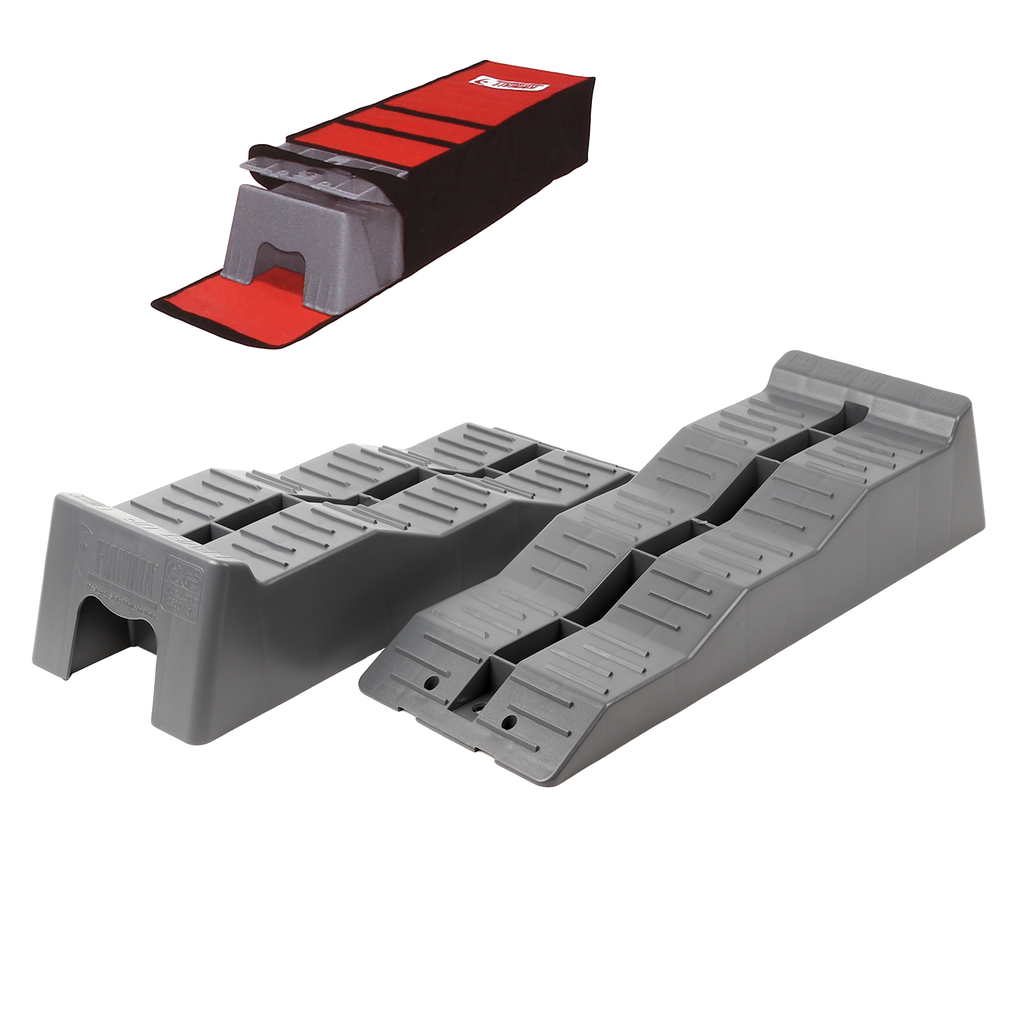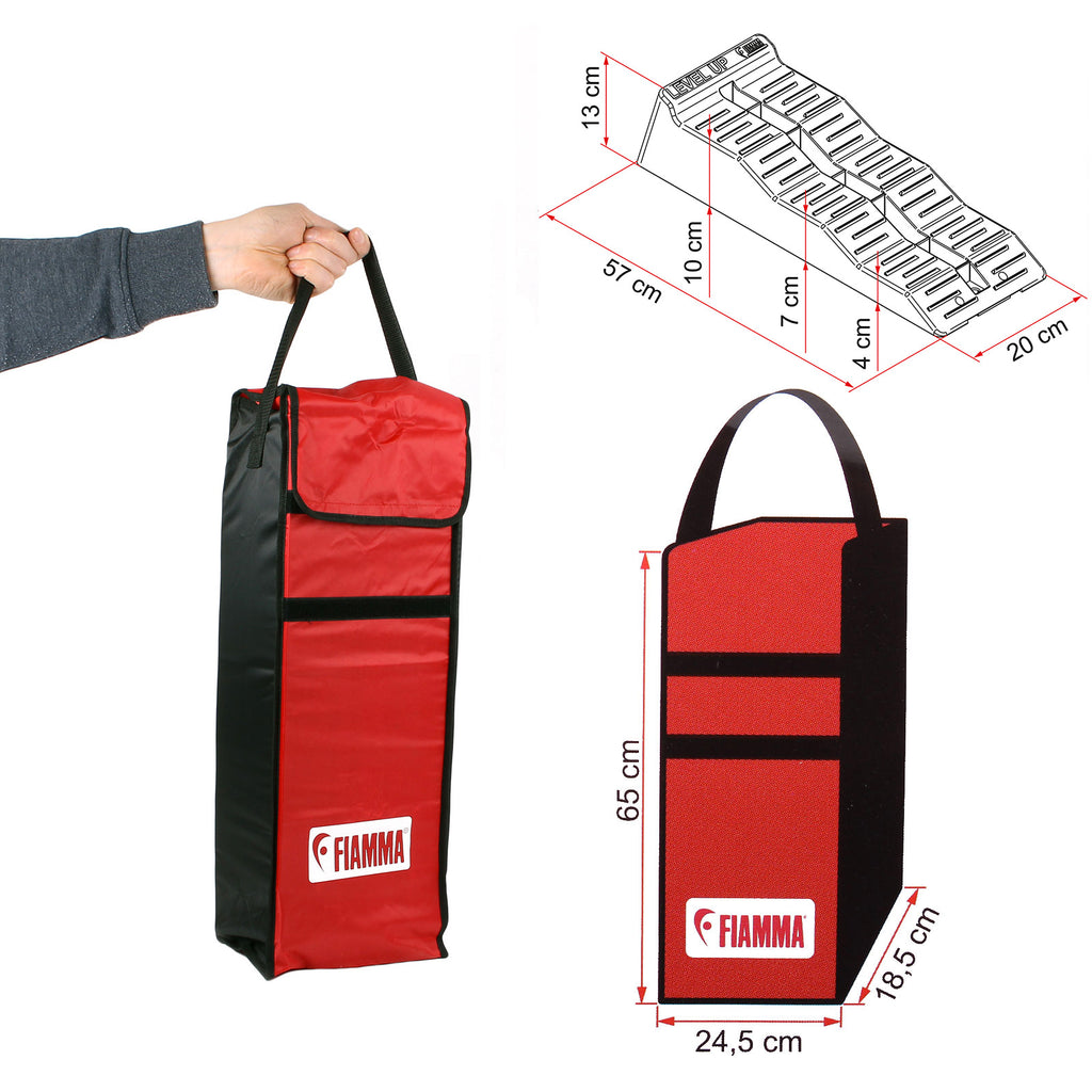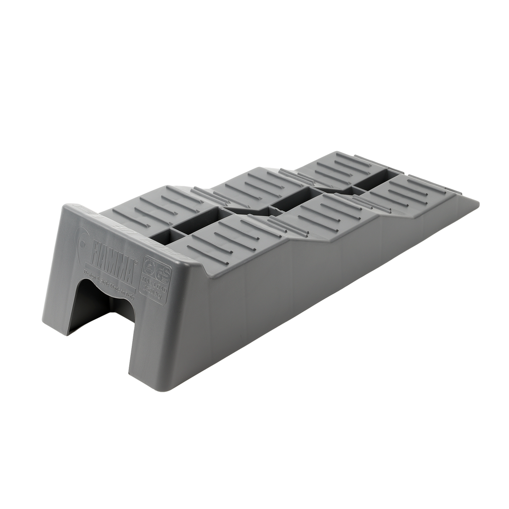Das extrem widerstandsfähige Nivelliersystem Level Up von Fiamma sorgt für mehr Tragkraft und Stabilität. Die Stufenkeile sind bestens für sowohl harten als auch weichen Untergrund geeignet. Die breite, rutschsichere Auffahrfläche in verschiedenen Höhen – Niveaus (4 – 7 – 10 cm) bietet sicheren Halt. Die robuste Materialzusammensetzung sorgt für geringe Verschleißerscheinungen trotz häufiger Nutzung. Auch Schräglagen auf dem Stellplatz gleichen die Keile zuverlässig aus. Dabei sind sie durche ihre Treppenform nicht zu steil und unterstützen ein leichteres Auffahren. Die vergleichsweise große Auflagefläche auf dem Boden ist besonders auf feuchtem Gelände von Vorteil und besonders standsicher.