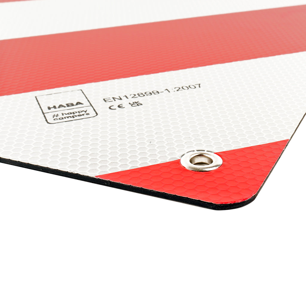 Warntafel für überstehende Ladungen, anzubringen an Reisemobilen, Wohnwagen, Anhänger oder Wohnmobil.