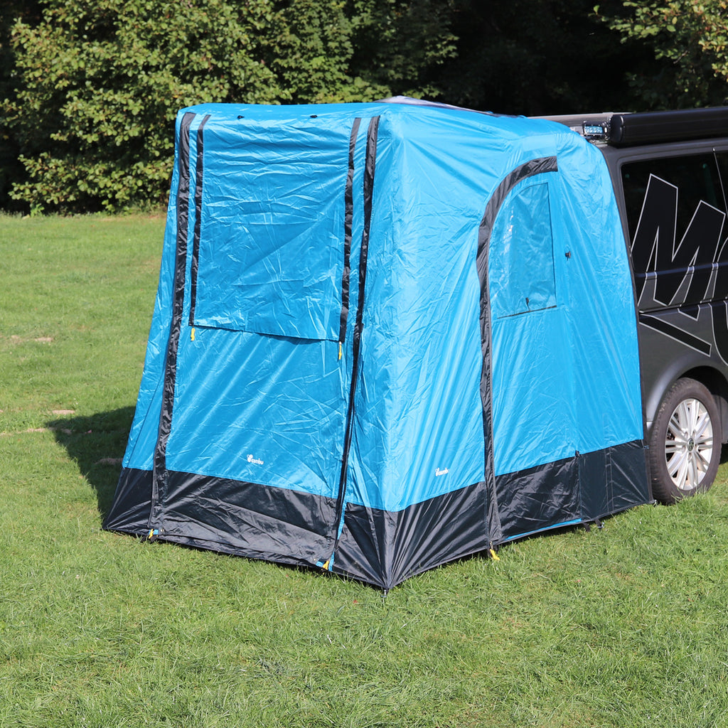 Heckzelte sind die optimale Wahl für alle Camper und Kastenwagenreisende, wenn es darum geht, den „Wohnraum“ des Fahrzeugs effektiv zu erweitern. Als geeignetes Basisfahrzeug bieten sich hier alle Modelle an, die mit einer nach hinten oben öffnenden Heckklappe ausgestattet sind.