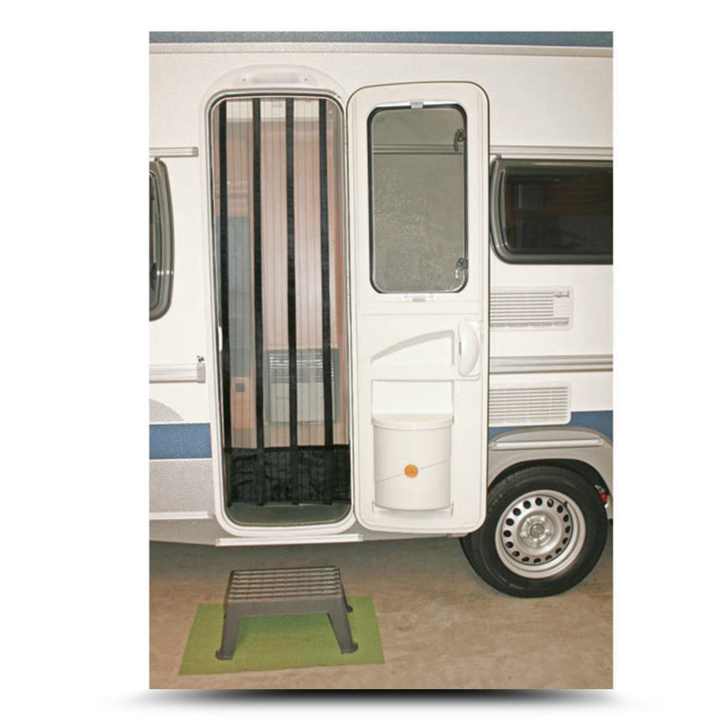 Die Belästigung durch umherfliegende Insekten in der Wohnzelle kann auf dem Campingplatz sehr störend sein. Der Fliegenschutz von wamovo® für Wohnwagen- und Wohnmobiltüren schafft Abhilfe!