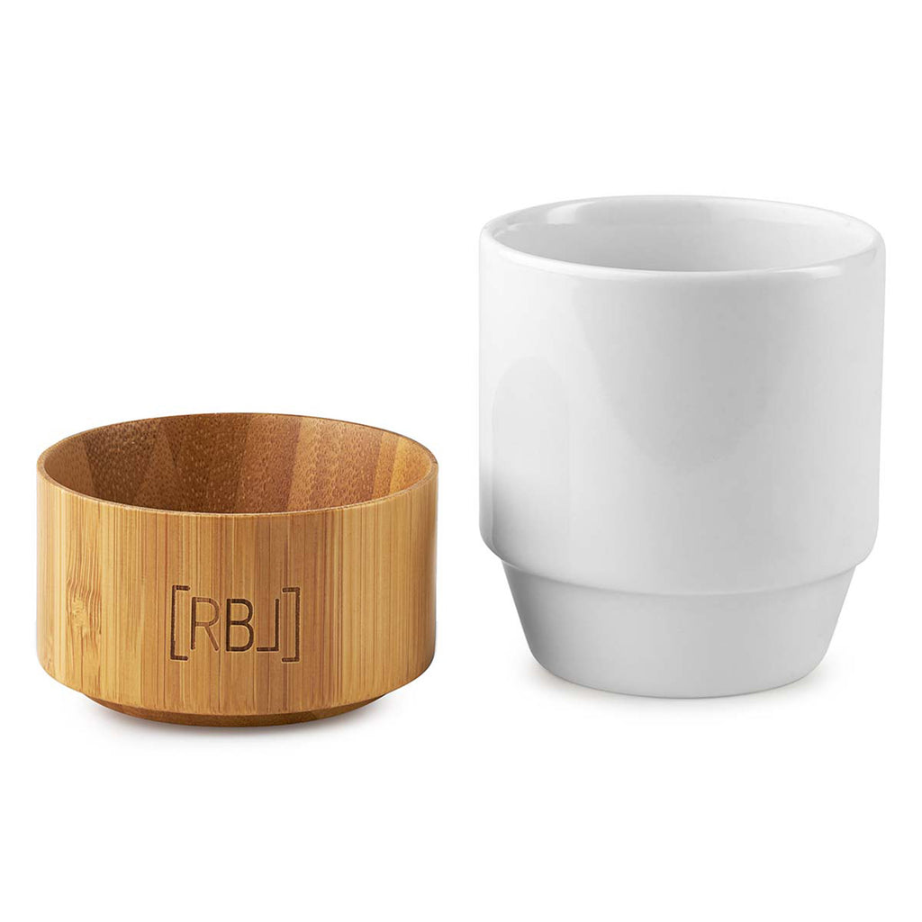 Der Kaffeebecher besteht aus 2 Teilen; ein Keramikbecher und eine Bambusschale. Diese haften durch Magneten aneinander. Ideal zum Kaffeetrinken oder zum Aufbewahren von Milch, Zucker oder beispielsweise einem Keks im Bambusbehälter.