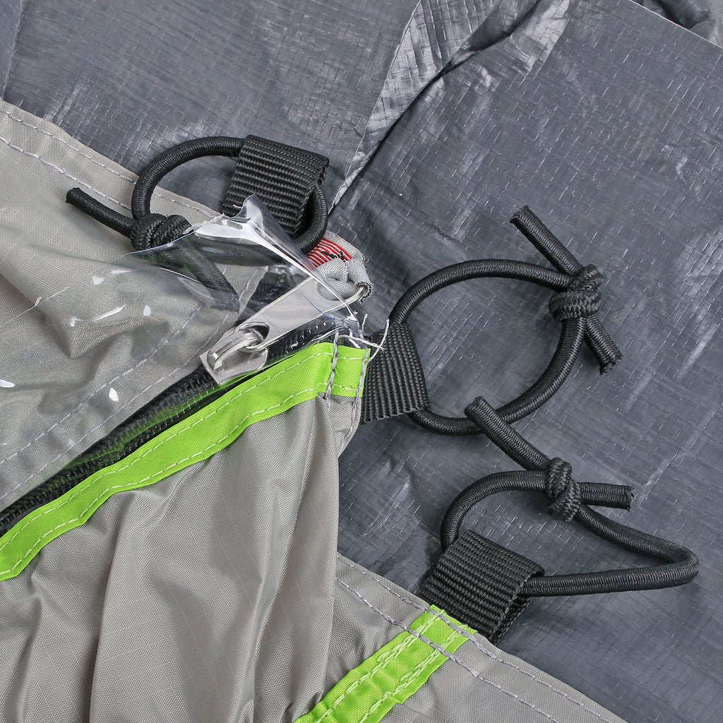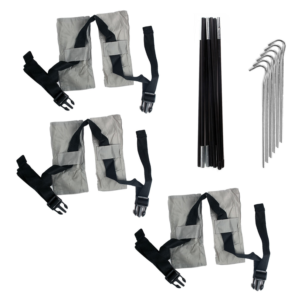 - Lieferumfang: Heckzelt, Glasfiberstäbe, Abspannleinen, Heringe und Packsack