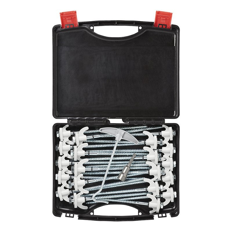 Das Schraubheringe-Set von APT® ist ein äußerst handliches Kofferset mit stabilen Stahlschraubheringen. Ideal für Dich als Camper, der sein Zelt oder Vorzelt schnell aufbauen möchte, ohne auf Standfestigkeit verzichten zu müssen und das dem vielleicht doch des sehr harten Untergrund zum Trotz.