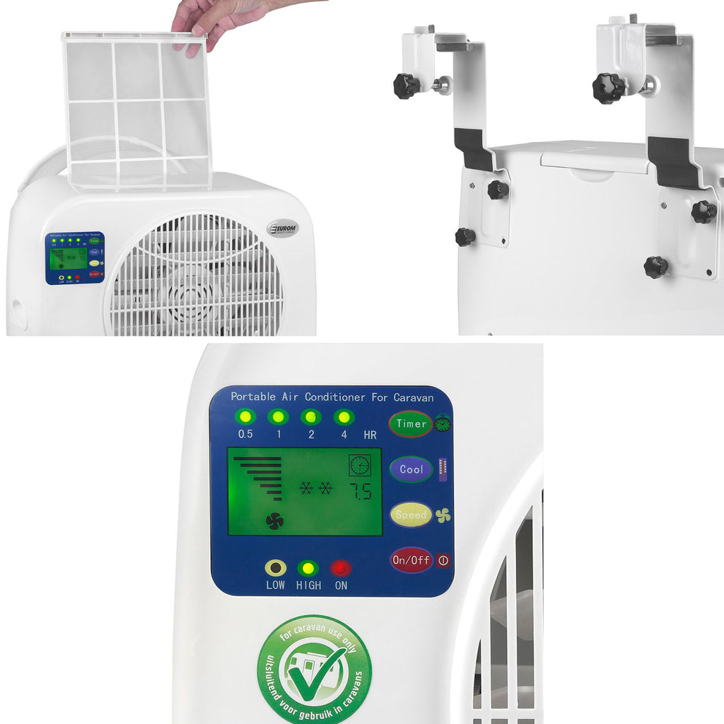 Die Eurom AC2401 ist mit seiner Kapazität von 2400 BTU gut für kompaktere Wohnwagen bis zu 16 m3 geeignet. Mit dem eingebauten Timer können Sie die Temperatur in Ihrem Caravan von 0,5 bis zu 7,5 Stunden voreinstellen.