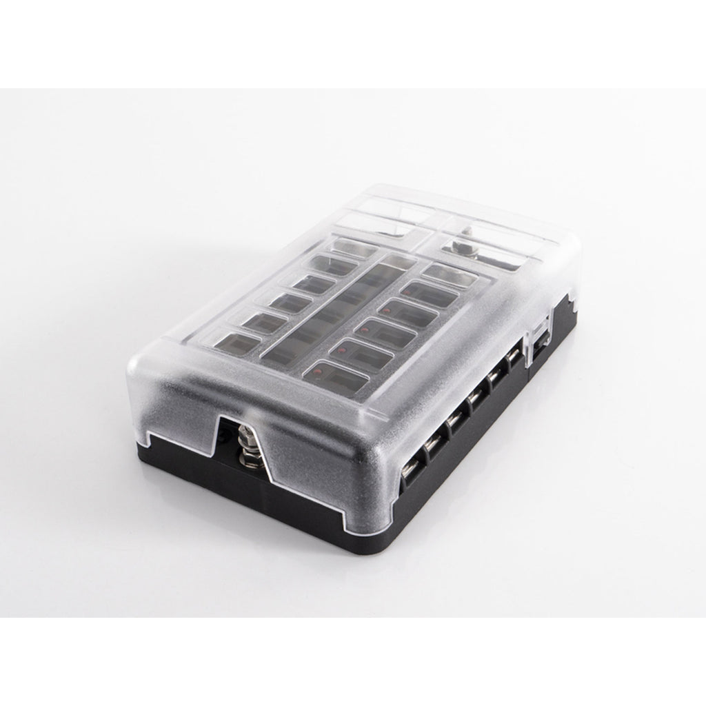 Kompakte Sicherungs- und Verteilerbox für bis zu zwölf Stromkreise. Eine rote LED-Leuchte signalisiert sofort, wenn eine Sicherung durchgebrannt ist. Ideal für Wohnwagen, Wohnmobil, Reisemobil, Boot