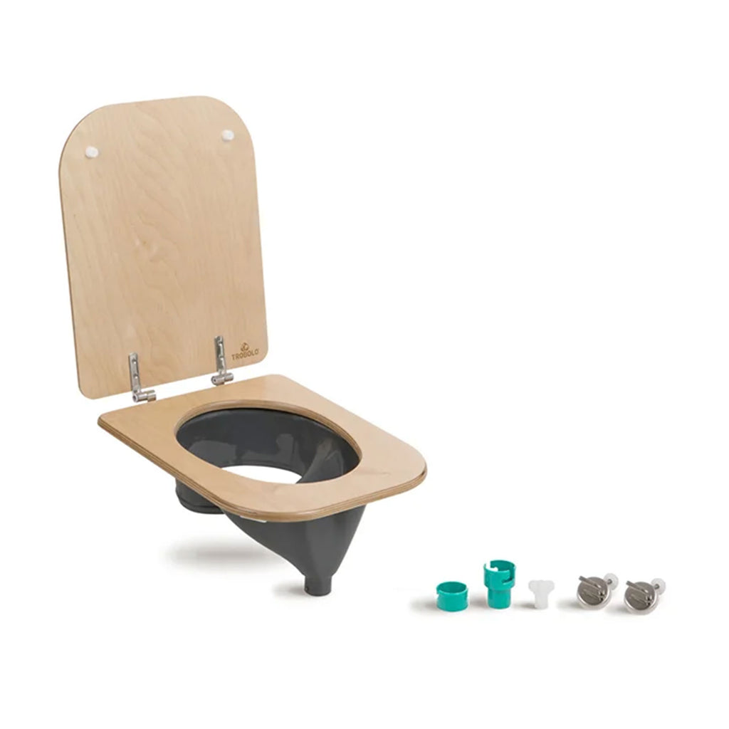 Das Trenntoiletten Einsatz & Holzsitz Set ist die ideale Basis für den Bau einer eigenen DIY-Trenntoilette. Es kombiniert den bewährten TROBOLO Trenntoiletten Einsatz für eine zuverlässige Trennung von Urin und Feststoffen mit einem handgefertigten Holzsitz mit Deckel für höchsten Komfort und Langlebigkeit.