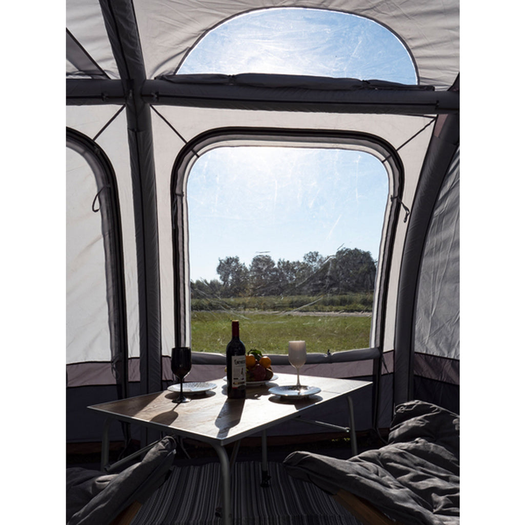 Das Vorzelt Marina Air High eignet sich optimal für Wohnwagen, Wohnmobile, Caravans und Campingbusse und bereichert deinen nächste Camping-Urlaub. Der geschaffene Wohnraum lässt sich zum Essen, Spielen oder Entspannen ideal nutzen und bietet ausreichend Schutz vor Wettereinflüssen. Die großen Fenster in der Front bestehen aus 3 Lagen (transparentem PVC, Moskitonetz und Abdeckung innen) und können komplett geöffnet oder auch entnommen werden. Somit ist eine ausreichende Belüftung stets gegeben. Als zusätzlicher Sonnenschutz können die Türen ebenfalls als Sonnensegel genutzt werden. Die Türen an der Seite sind mit einem Moskitonetz und Abdeckung ausgestattet. Aufgrund des einen Luftschlauches ist das Luftvorzelt leicht und besonders schnell aufgebaut.