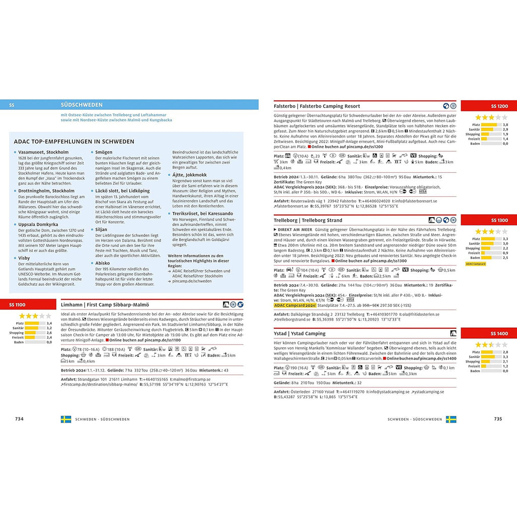 Rund 2.600 Campingplätze in 16 Ländern werden vorgestellt und mit der zuverlässigen Bewertung der Plätze mit bis zu 5 Sternen klassifiziert. Mit touristischen Informationen zu jedem Land und vielen Regionen und übersichtlicher Darstellung aller Plätze auf der großformatigen Planungskarte: So ist der Campingplatz für die nächste Nacht schnell gefunden.