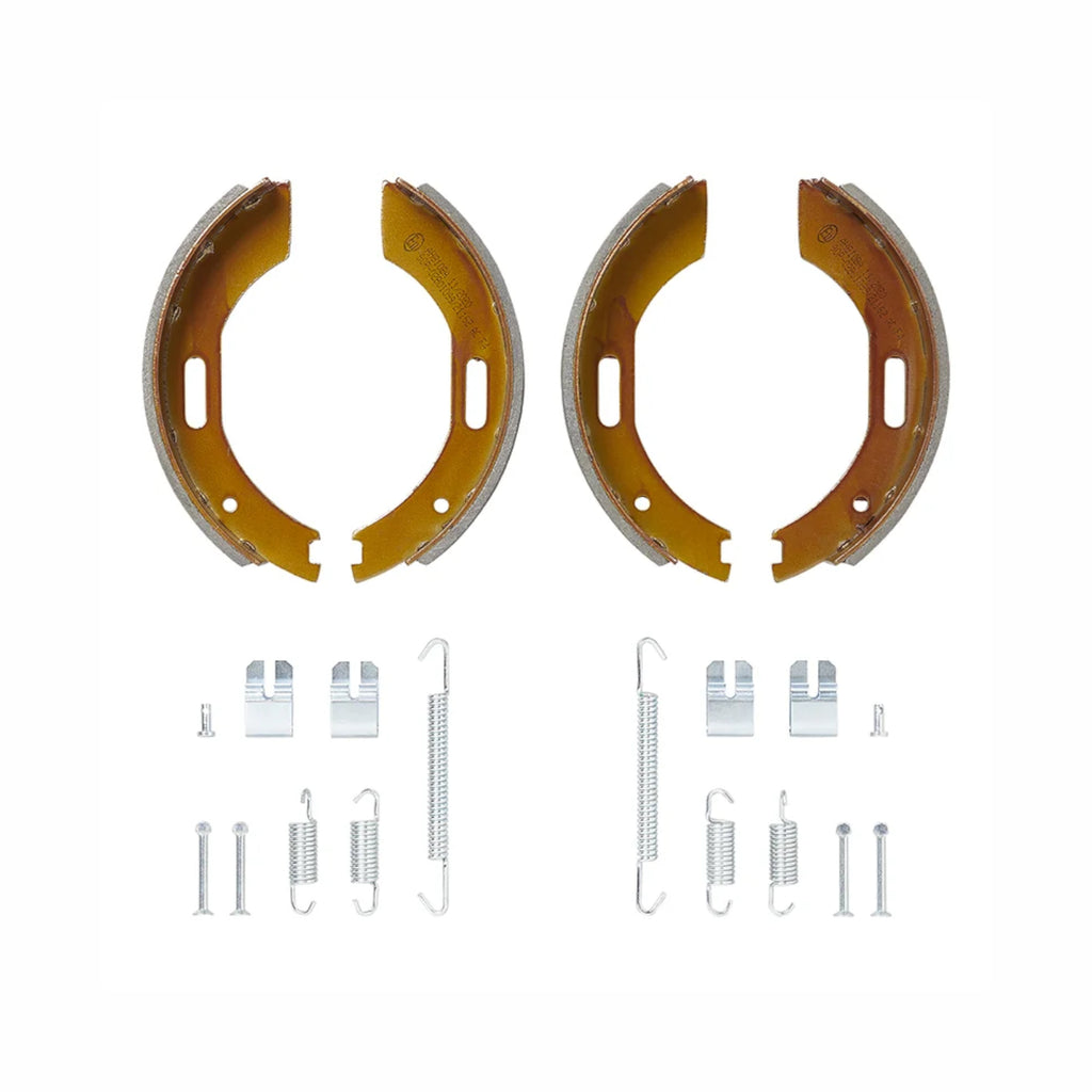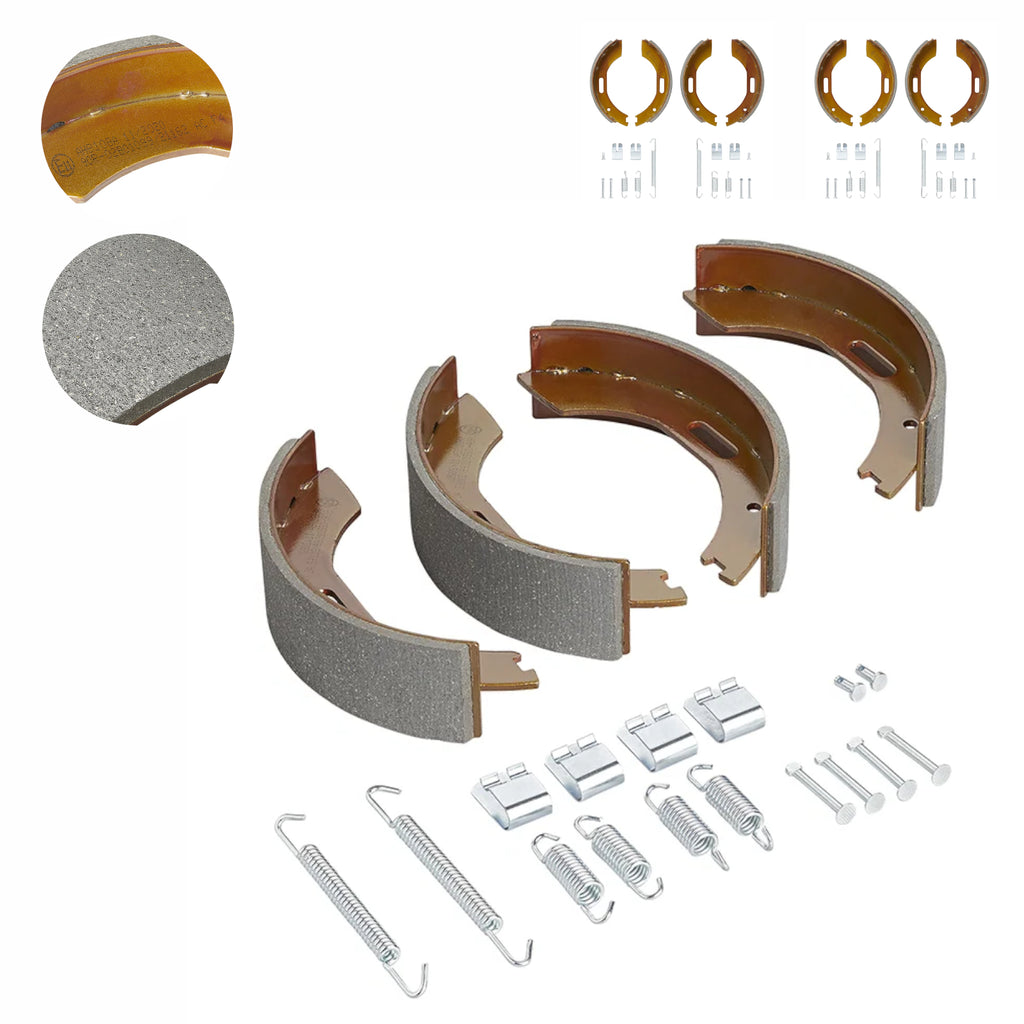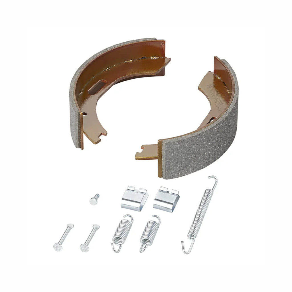 - Satz: 4x Bremsbacken, 4x Zugfedern kurz, 4x Spannfeder, 4x Spannstift lang, 2x Zugfedern lang, 2x Spannstift kurz