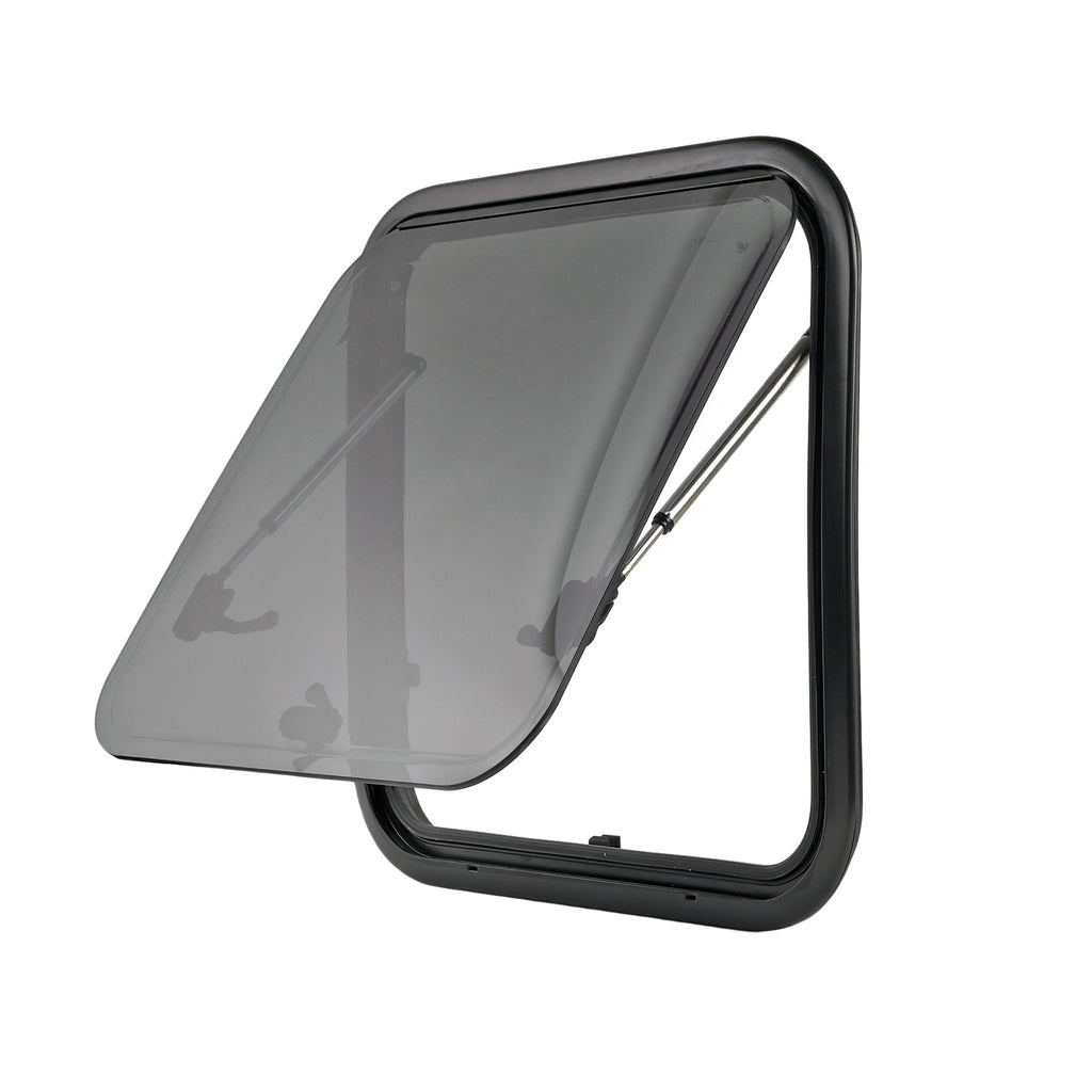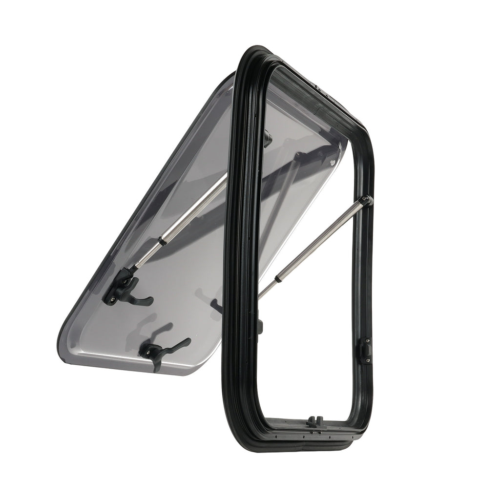 Das Acryl-Ausstellfenster ist ein optisches Highlight! Die Scheibe des Fenster schließt perfektaufliegend mit dem hochwertigen, schwarzen Rahmen ab. Das Fenster lässt sich über zwei äußerst handliche Griffe öffnen und dank der Teleskopaussteller verstellen. Die getönte Scheibe bietet Privatsphäre und garantierten Sichtschutz.