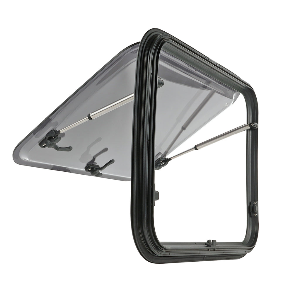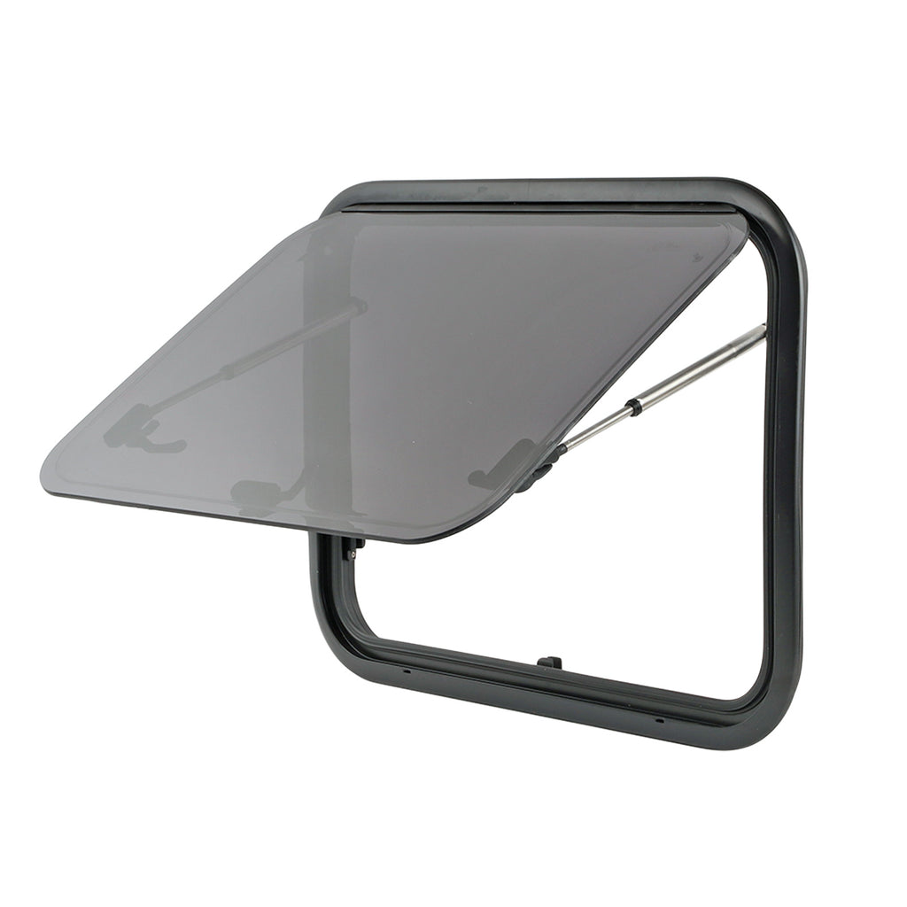 Das Acryl-Ausstellfenster ist ein optisches Highlight! Die Scheibe des Fenster schließt perfektaufliegend mit dem hochwertigen, schwarzen Rahmen ab. Das Fenster lässt sich über zwei äußerst handliche Griffe öffnen und dank der Teleskopaussteller verstellen. Die getönte Scheibe bietet Privatsphäre und garantierten Sichtschutz.