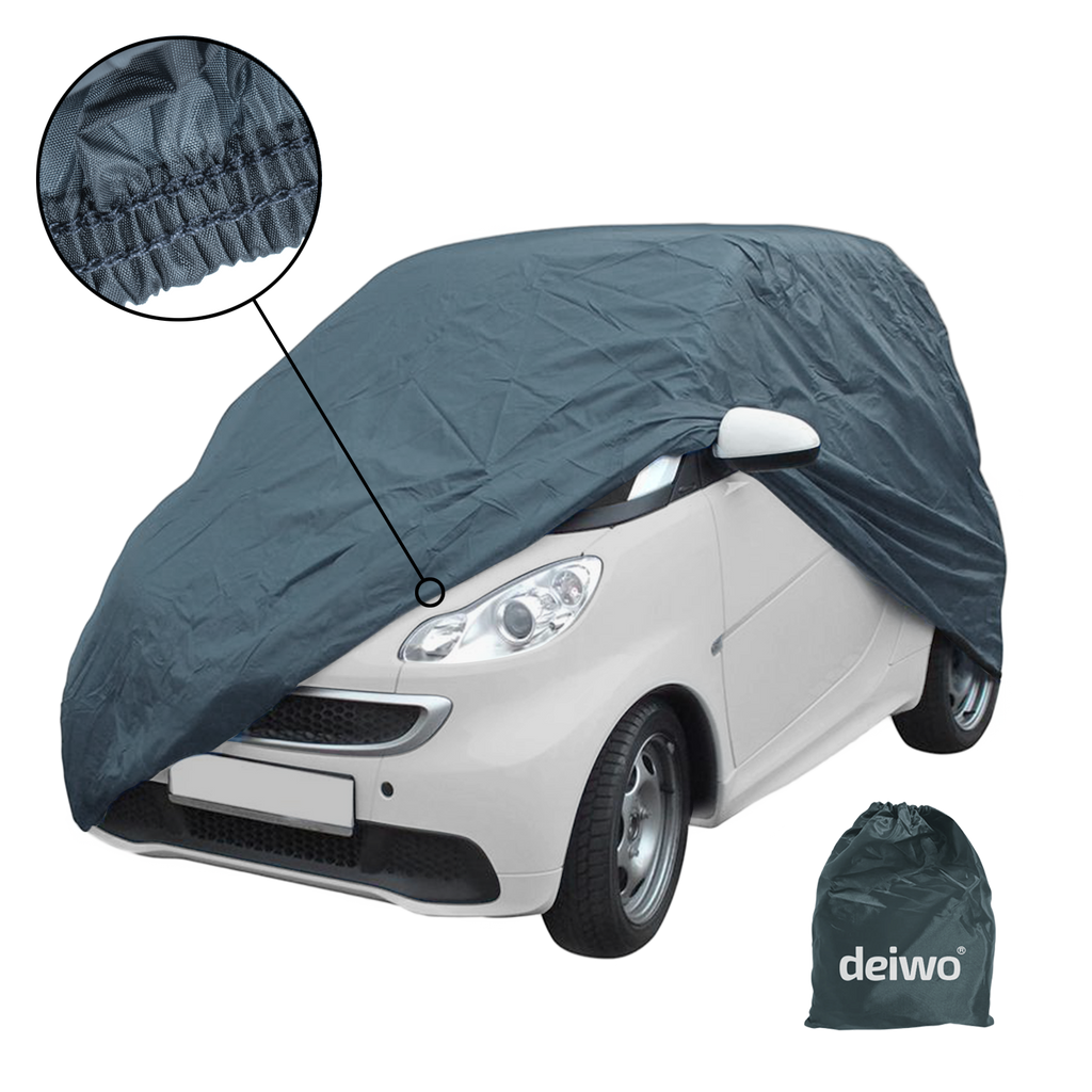 Wer zu der kalten Jahreszeiten künftig keine Lust hat, seine Scheiben mühselig von Eis zu befreien, sollte auf eine praktische Ganzgarage von deiwo zurückgreifen. Durch die gummierten Spannbänder lässt sich die Autogarage in nur wenigen Minuten auf fast alle Fahrzeugtypen haltstabil anbringen. Durch die Packtasche lässt sich die Ganzgarage kompakt und sauber im Kofferraum oder Handschuhfach verstauen.