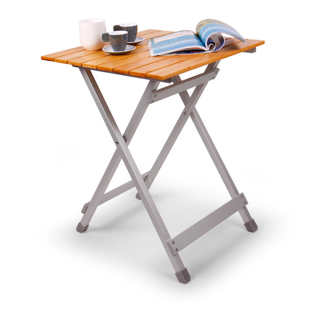 Hast du mal wieder zu wenig Platz auf deinem Tisch? Aber auch noch kaum Platz und Traglast in deinem Fahrzeug übrig? Dann ist dieser edle Bambus Klapptisch genau das Richtige für dich. Er hat eine Größe von 50 x 50 cm und kann besonders flach zusammengeklappt werden, sodass er kaum Platz beansprucht. Das Tischgestell besteht aus robustem Aluminium.