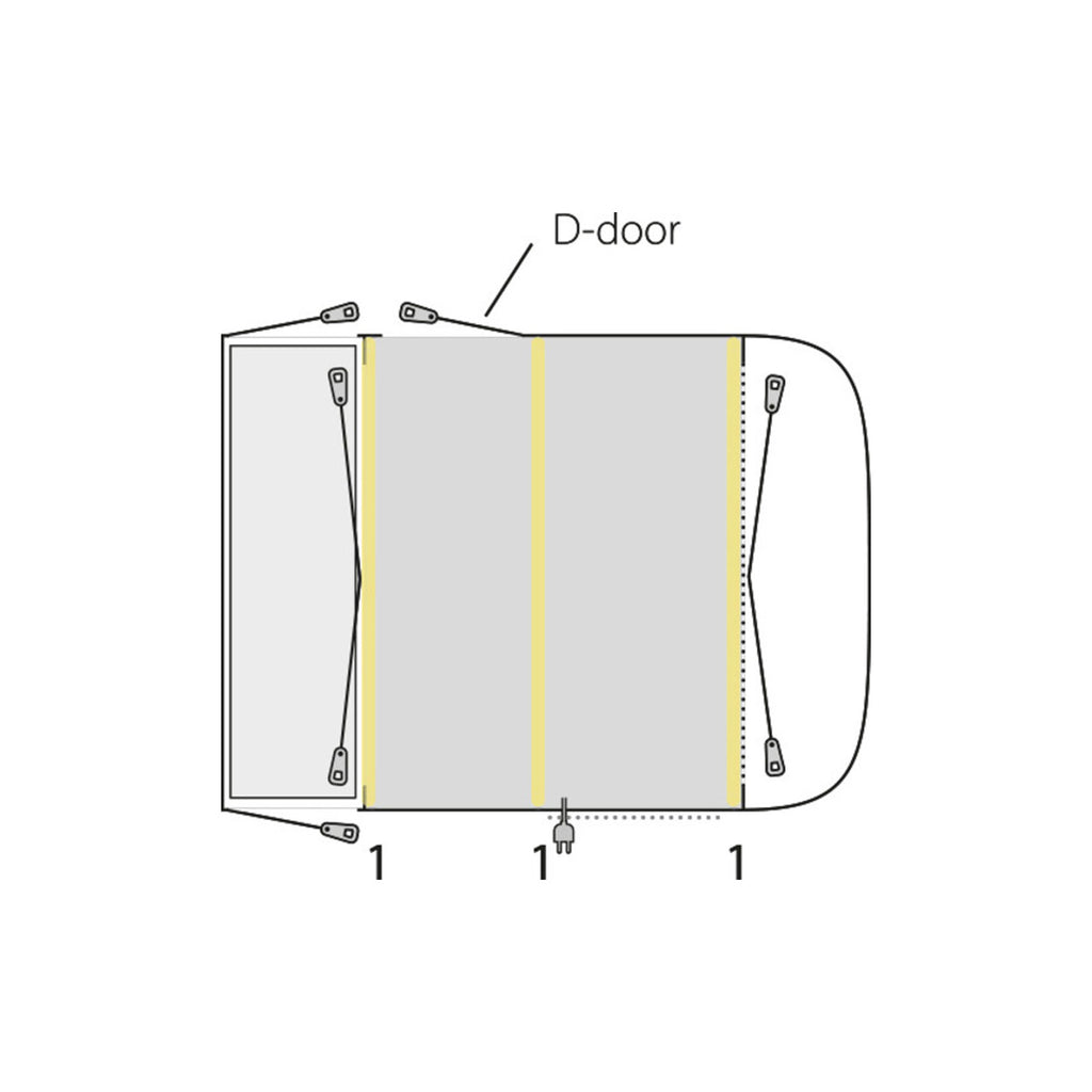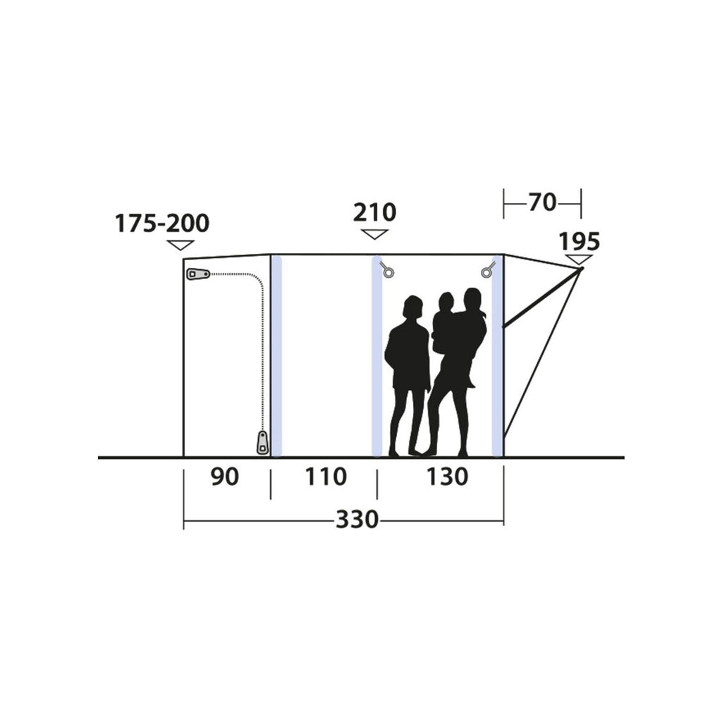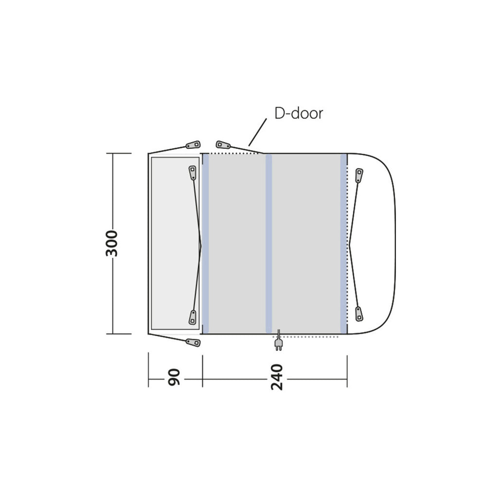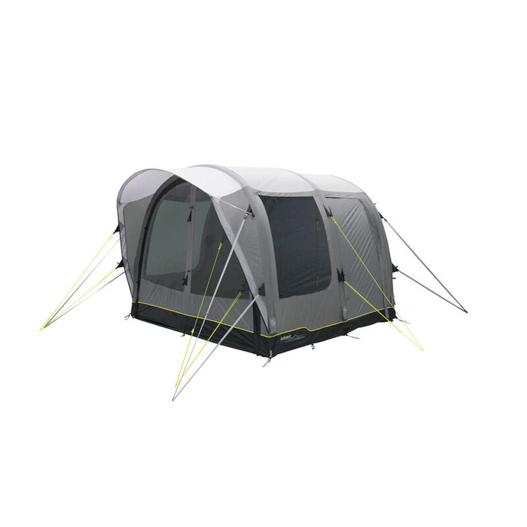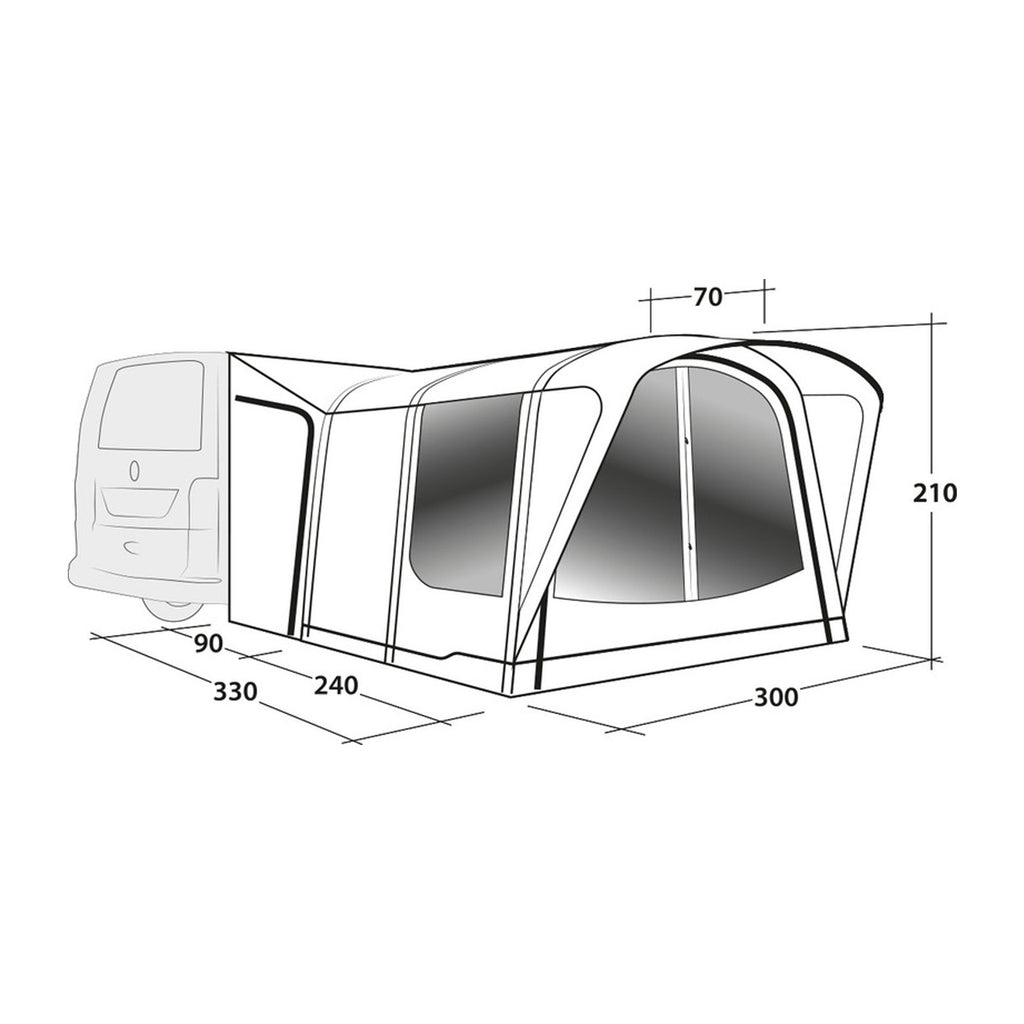 Das freistehende Busvorzelt Newburg 240 Air wird mit drei Luftschläuche aufgeblasen und bietet einen Innenraum von 240 x 300 cm an. Der Wohnbereich lädt zum Essen, Spielen oder Entspannen ein und bietet gleichzeitig ausreichend Schutz vor Wettereinflüssen. Die aufrollbare Vordertür unter dem abgerundeten Vordach sowie die rechte Seitentür ist zusätzlich mit einem Insekten- und Moskitonetz ausgestattet, für ein Mücken -und Insekten freies Zelt. Die Schleusenanbindung zum Fahrzeug kann ganz einfach getrennt werden, sodass das Vorzelt stehen bleiben kann während du mit deinem Reisemobil die Umgebung erkundest. Das optionale Innenzelt bietet zwei Schlafplätze. In der Vorzeltschleuse befinden sich Eingänge auf beiden Seiten und für den Boden ist eine Bodenplane im Lieferumfang enthalten. Sturmbänder sorgen zusammen mit den robusten Luftschlauchsystem für eine ausgezeichnete Stabilität. Das Teilzeit eignet sich ideal für deinen Campingbus, Kastenwagen oder Van und bereichert deinen nächsten Camping-Urlaub.