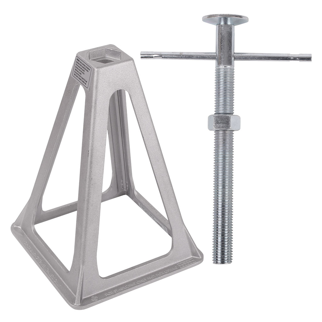 Maximale Sicherheit mit Stützbocksatz und Unterlegplatten der Firma Camco. Das Set besteht aus vier Stützböcken „Jumbo“ aus robustem Aluminium und passenden Stützplatten „Jack Pads“ aus hochwertigem Kunststoff (inklusive Klettband für platzsparendes Verstauen). So sorgen Sie für angemessene Sicherheit auf Ihrem Camping-Abenteuer - auch bei schwierigen Bodenverhältnissen. Die massiven Unterstellböcke sind für eine Tragelast bis maximal 2722 kg pro Bock ausgelegt. Herausnehmbare Stützen und die stufenlos verstellbare Gewindestange ermöglichen eine einfache Handhabung (minimale Höhe 28 cm, maximal Höhe 43 cm). Das Set eignet sich für die Stabilisierung von. Auto, Anhänger, Wohnwagen und Wohnmobilen.