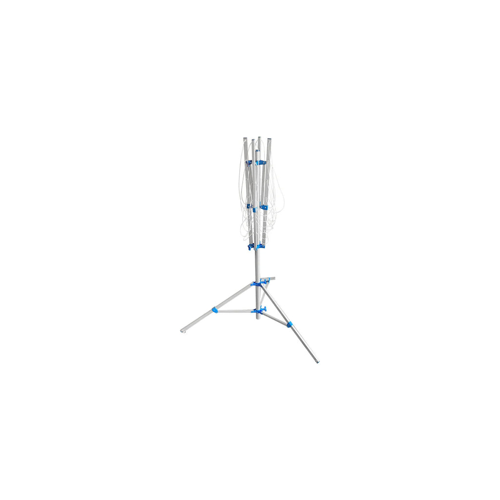 Schluss mit sperrigen Wäschespinnen, die unnötig Platz einnehmen, dennoch gehören Hemden, Blusen und Jacken zum formschonenden Trocknen an einen Kleiderbügel - auch unterwegs! Die Aluminium-Camping-Wäschespinne ist ein muss für jeden Camper. Dieser stabile Helfer im Unterwegs-Haushalt, bietet mit seinen vier Armen reichlich Aufhängemöglichkeiten für all deine Kleidung. Mit 13 m Wäscheleine und einer Spannweite von 152 cm ist die Wäschespinne in dieser Größe ideal für längere Aufenthalte und Dauercamping geeignet. Der breitstehende Fuß sorgt für einen festen Stand. Nach dem Trocknen lässt er sich einfach zusammenklappen und platzsparend verstauen.