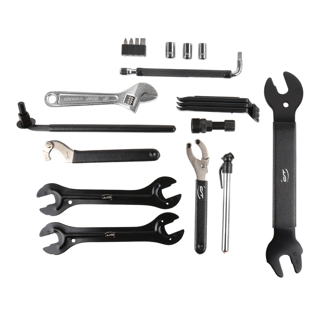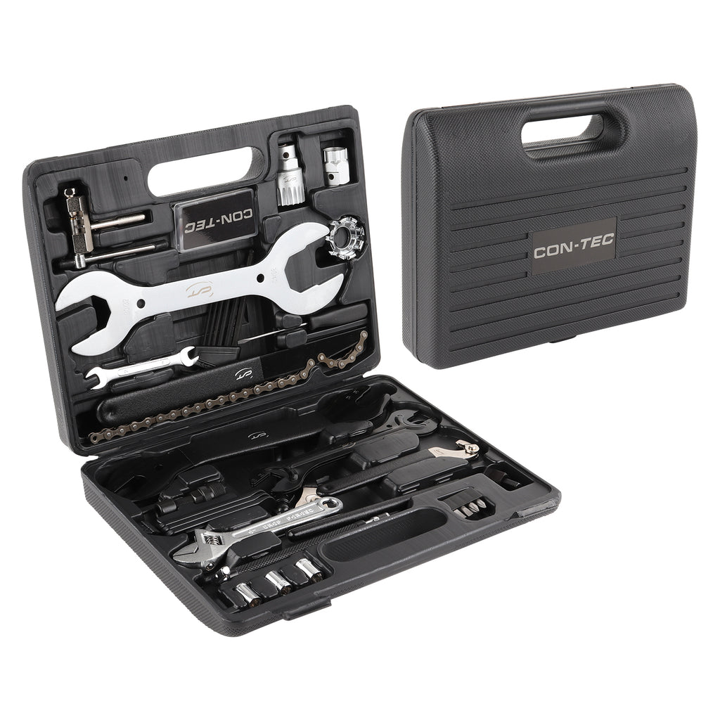 Der handliche Werkzeugkoffer von CONTEC bietet alles, wonach sich Fahrrad-Profis und Hobbyisten sehnen. Das Fahrradwerkzeug besteht aus gehärtetem Stahl und ist für den professionellen Werkstattgebrauch vorgesehen. Ein stoßfester Kunststoffkoffer schützt das Werkzeug vor Beschädigungen und sorgt zudem für Ordnung. So hat alles seinen Platz und ist bei Bedarf griffbereit.