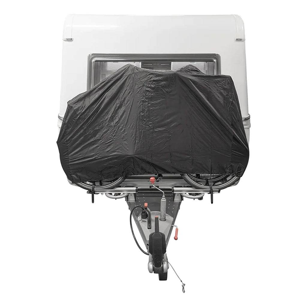 Ein Camping-Trip ohne Fahrrad? Undenkbar! Damit das Bike während der Tour mit Wohnwagen & Co. auch optimal geschützt ist, empfehlen wir dieses Bike-Cover aus strapazierfähigem Nylon. Ganz egal wie turbulent das Wetter ist - ob Regen, Schnee oder Frost: Mit dieser Deichselfahrradhaube ist ein sicherer Transport garantiert. Tunnelzug und Raffverschluss für das einfache Befestigen sind inklusive. Natürlich, die Fahrradhaube ist auch im Alltag ein praktisches Tool und eignet sich gleichermaßen Zuhause für eine wetterresistente Abdeckung des Bikes. Einsetzbar indoor und outdoor.