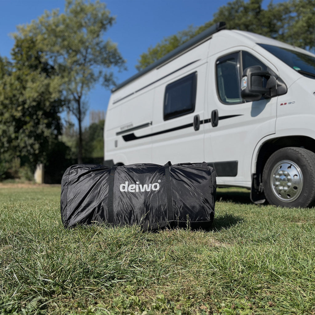Das deiwo Caravan-Vorzelt schenkt dir ausreichend Privatsphäre auf dem Campingplatz oder in der Natur. Ein wahres Raumwunder: Das Anbauzelt bietet dir viel nutzbaren Platz mit Stehhöhe und das direkt am Fahrzeug. Der erweiterte Wohnraum lädt zum Essen, Spielen oder Entspannen ein und schützt dich dabei vor Regen und Nässe sowie UV- und Sonnenstrahlen