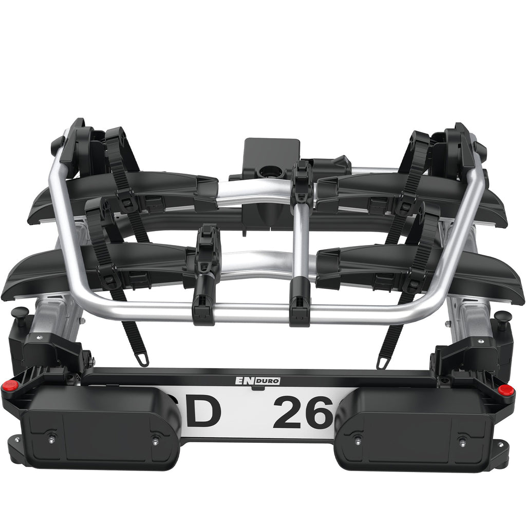 Der Heckträger ist mittels Schnellkupplung einfach zu montieren, bietet Platz für bis zu zwei normale oder elektrische Fahrräder. Durch das clevere Design und mit einem Gewicht von nur 20,5 kg, ist er sehr stabil, sicher und hält deine Fahrräder während der Fahrt an Ort und Stelle.