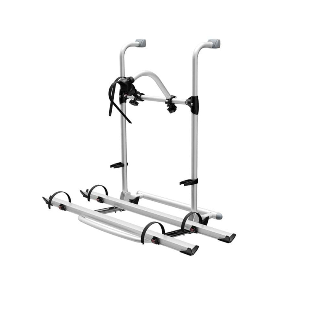 Passend für die Befestigung am Heck. Ausgestattet mit zwei Radablagen und teleskopierbaren Stützrahmen aus Edelstahl, der es ermöglicht, einen dritten und einen vierten Radkanal zu platzieren. Zur Montage an den Rückwänden von Reisemobilen, an denen die Fiamma-Befestigungswinkel bereits ab Werk serienmäßig montiert sind. Daher wird dieser Fahrradträgertyp ohne Wandhalterungen geliefert.