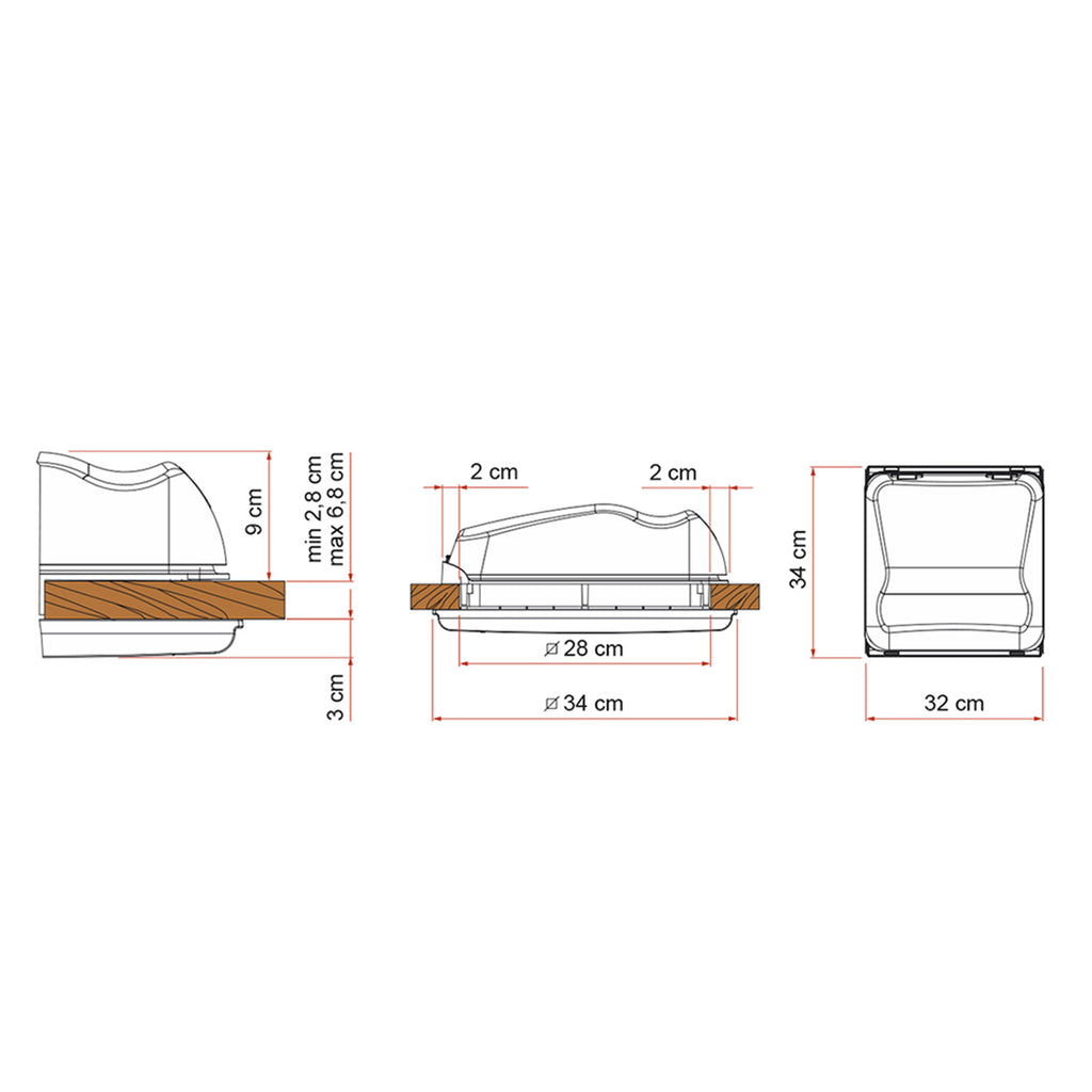 Aerodynamische Dachluke mit engmaschigem Moskitonetz. Kurbeldachhaube Fiamma Vent 28x28cm.