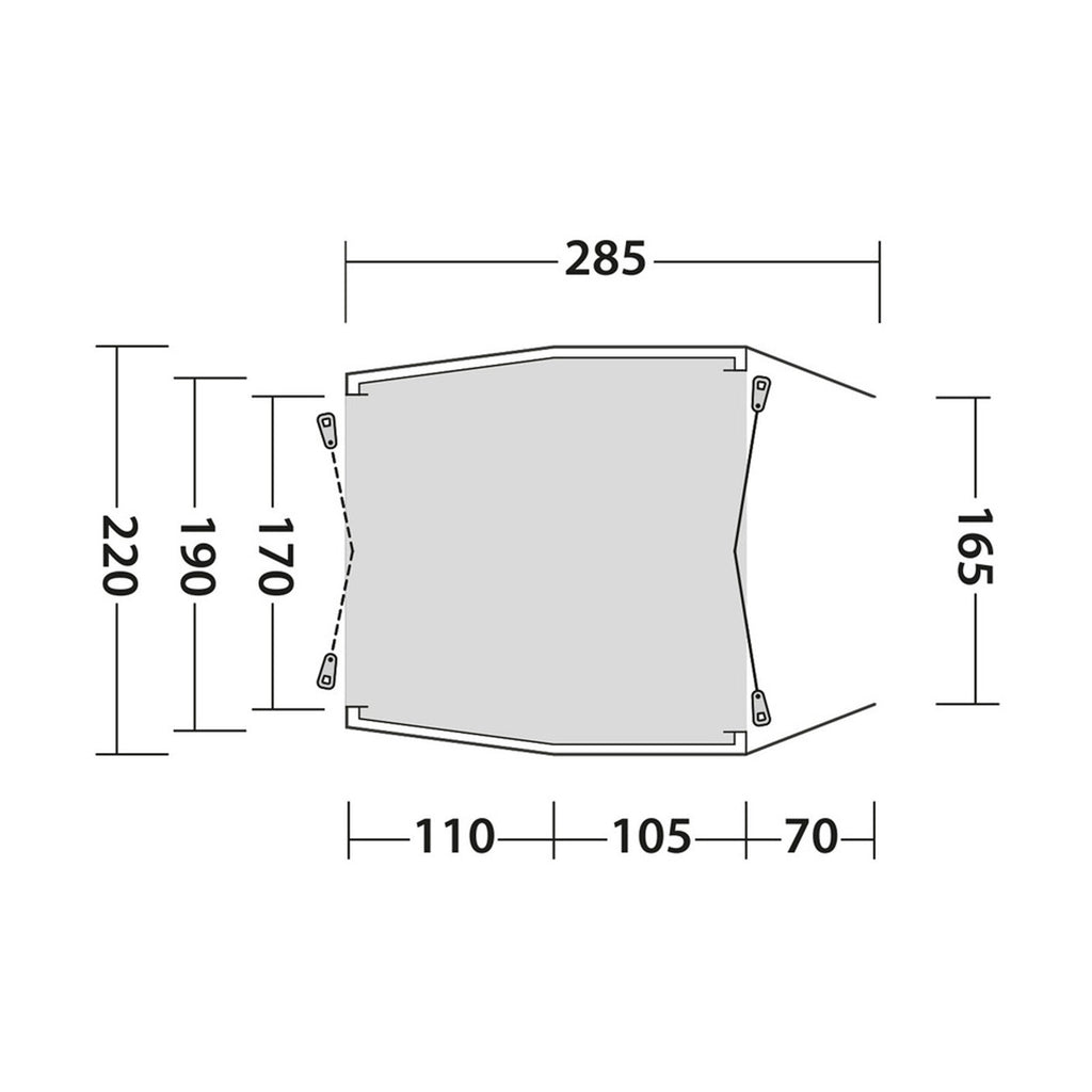 - Lieferumfang: Zelthaut, Gestänge, Abspannmaterial, Packtasche (ohne Aufstellstangen für Sonnenvordach)