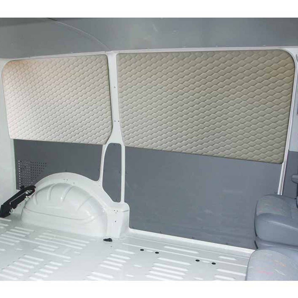 Die Innenverkleidung in schicker Kunstlederoptik mit Steppung passt optimal in dein VW T5 oder T6 (ohne Fenster) und sorgt für ein wohnliches Ambiente. Die Seitenverkleidung für hinten rechts ist leicht zu befestigen mit Dübeln in den vorhandenen Löchern beim T5/T6 (ohne Verglasung) oder mit Klett. Das Material ist farblich auf die VW-Innenfarben abgestimmt.