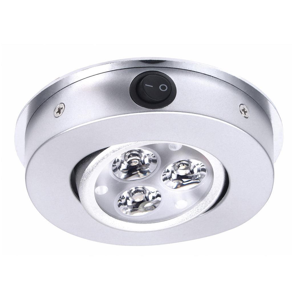 LED Deckenleuchte silber, mit Kippschalter, high power LEDs 3x1W, 10-30V, Ø105mm H24mm. LED Leuchten 12V bringen stimmungsvolles Licht bei sehr geringem Strombedarf und langer Haltbarkeit. Energieeffizientsklasse A
