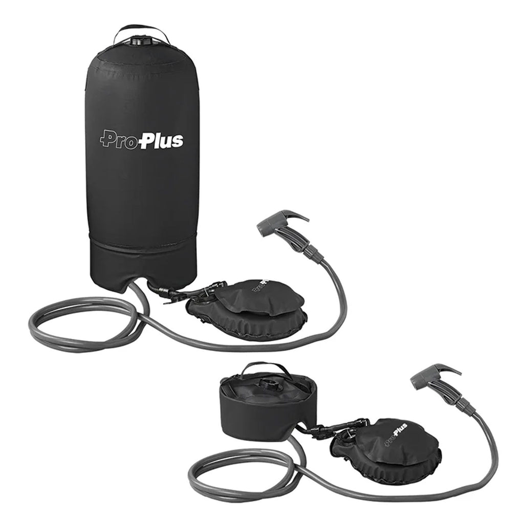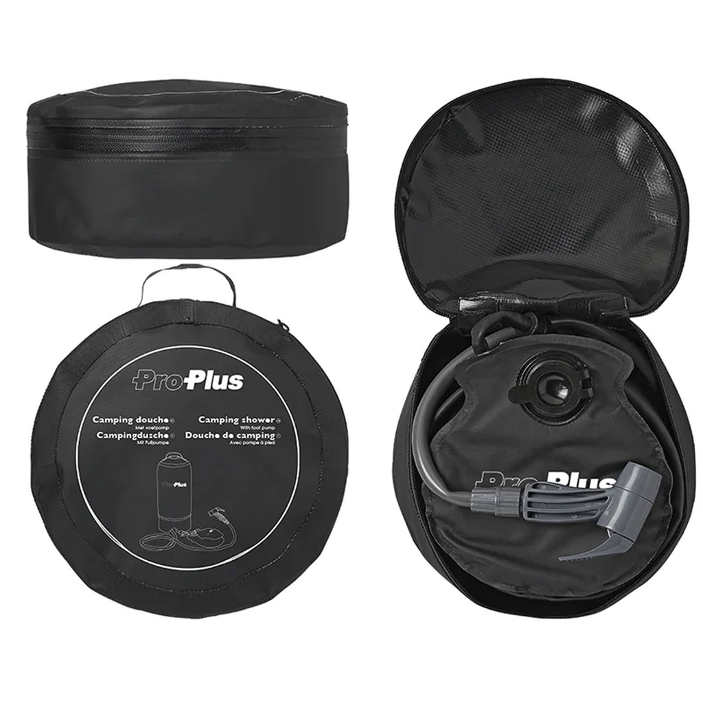 Erfüll Dir den Traum vom Freiluft-Duschen, ob in der Natur, am Strand, im Wald oder direkt vor der Zelthaustür - mit dieser cleveren Outdoor-Dusche inklusive großem Druckbehälter aus wasserdichtem Nylon-Gewebe. Eine kompakte Fußpumpe erzeugt den notwendigen Druck, um jederzeit und überall komfortabel duschen zu können. Eine mobile Campingdusche im Gepäck zu haben, sorgt für ein sauberes Körpergefühl, egal, wo du dich gerade befindest. Diese Deluxe-Version mit mehreren Materialschichten ist noch länger haltbar und vor ungewolltem Auslaufen geschützt. In besonders robuster Ausführung, verfügt der Duschtank über eine hohe Wasserkapazität: Der kompakte Tank kann problemlos bis zu 12 Liter Wasser aufnehmen. Dank der vielseitigen Nutzbarkeit, eignet sich die Outdoordusche auch für die schnelle Reinigung des Fahrzeugs und/oder Fahrrad, oder, um nach dem Essen das Geschirr abzuspülen.Technische Daten