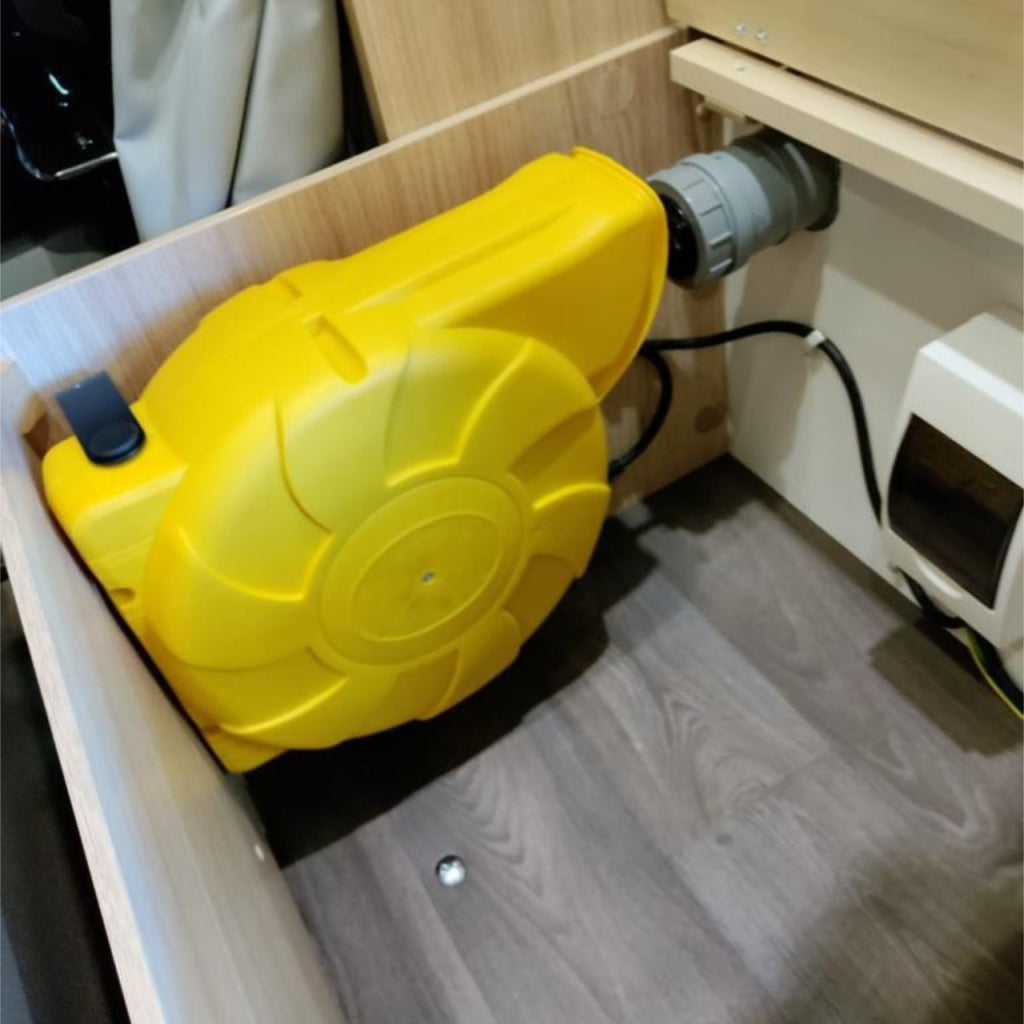 ROLL-UP-CABLE ist ein automatisches Aufrollsystem für die Stromversorgung deines Wohnmobils oder Wohnwagens. Das System wird in einer sogenannten Unterputzdose in die Seitenwand deines Fahrzeugs eingebaut.