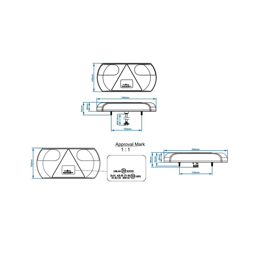 Rückleuchte 6 Funktionen 296x142mm 32LED links