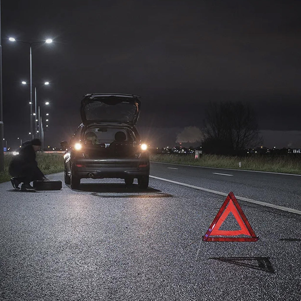 Das Gefahrendreieck ist zusammenfaltbar und findet in der mitgelieferten Aufbewahrungsbox Platz. So kannst du es bequem im Kofferraum verstauen und hast es immer griffbereit.