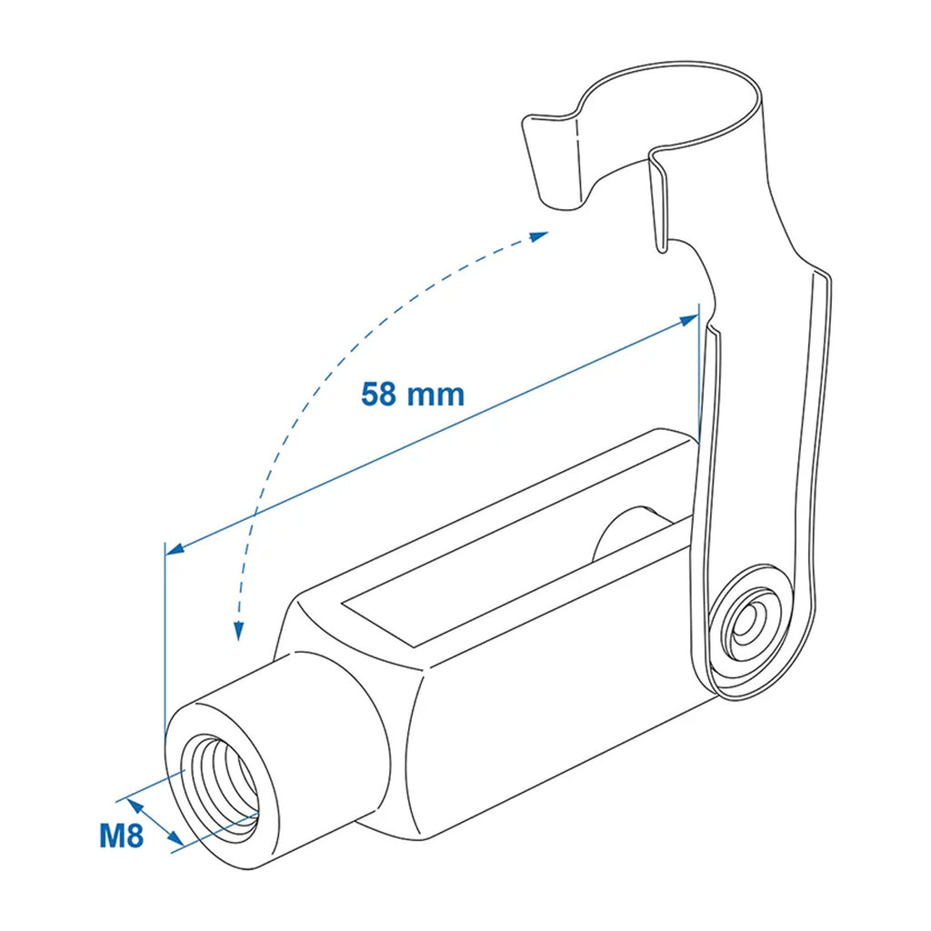 Gabelkopf mit Innengewinde M8 für Bremsseile und Bremsgestänge an Anhängern.