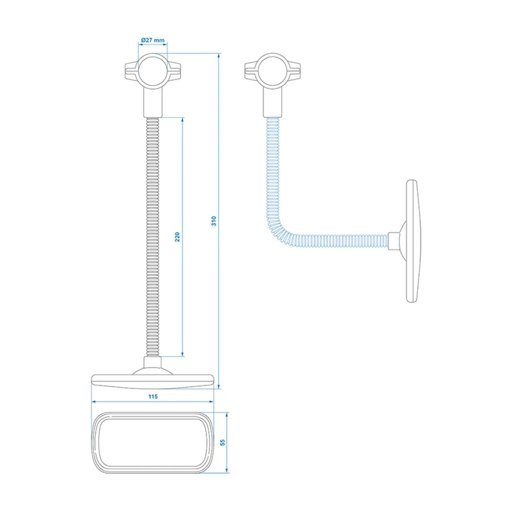 - Vergrößert den Betrachtungswinkel dank der konvexen Form des Spiegels