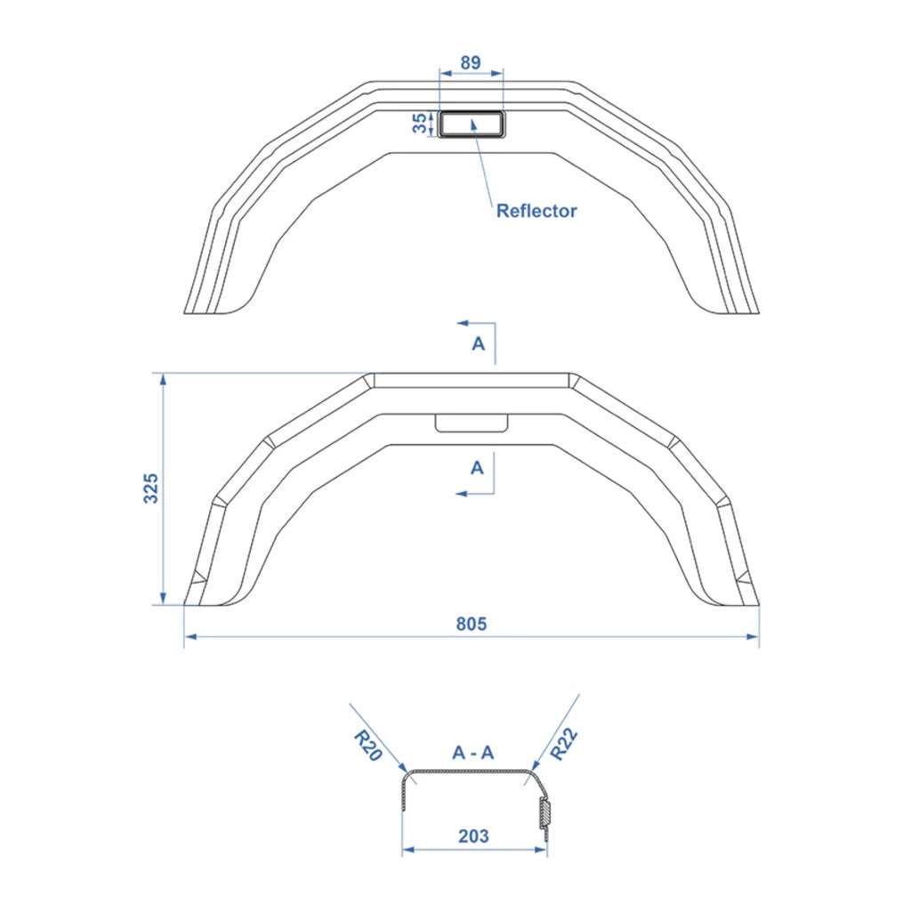 Leichter Kotflügel aus Kunststoff für 13"-Räder mit Reflektor, ist geeignet für Anhänger, Pferdeanhänger und ähnliche. Zudem hat der Kotflügel eine gewölbte Schutzkante und ist einfach zu befestigen. Durch das flexible Material, sind einfache und leichte Rempler oder Stöße kein Problem.