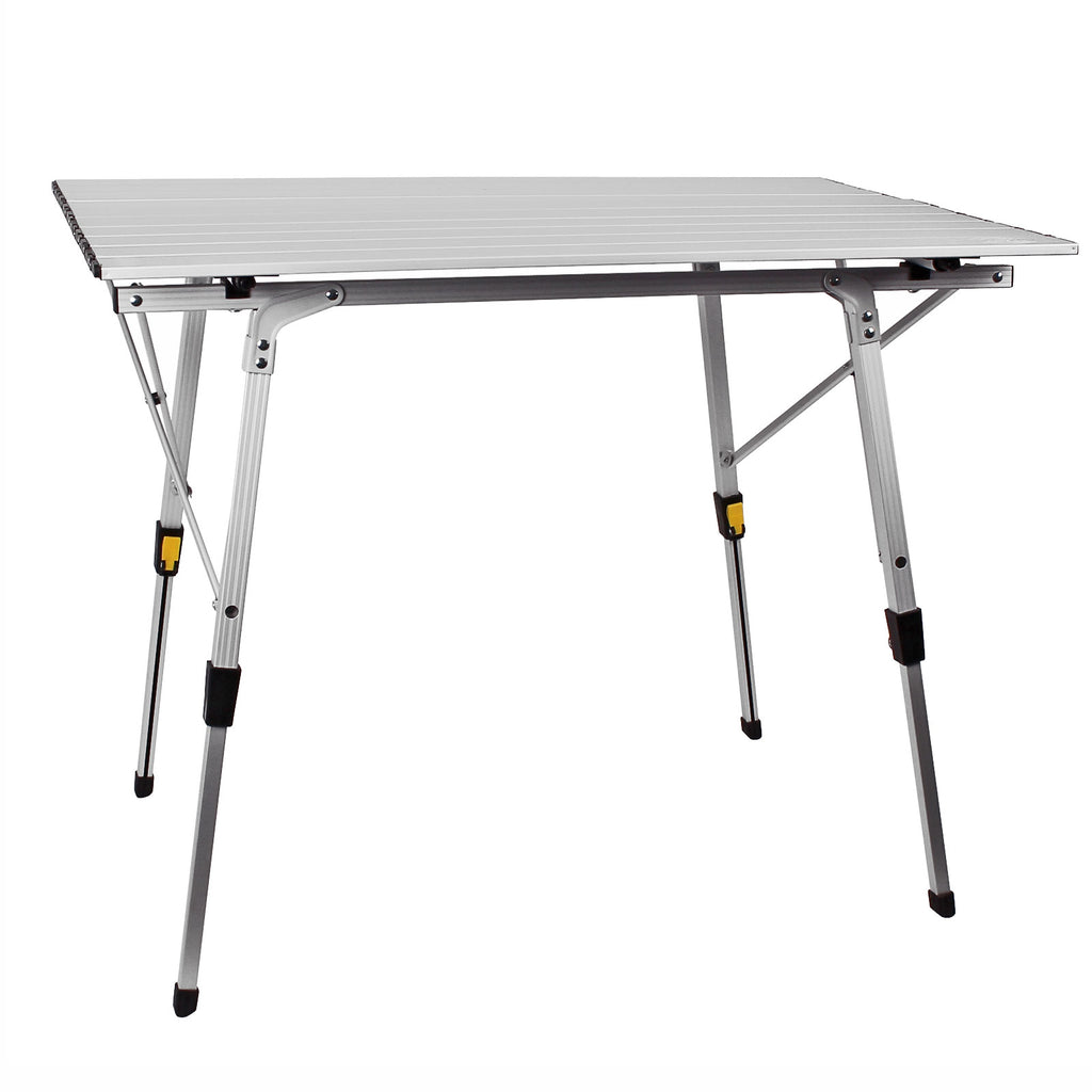 Alu Rolltisch mit neuartiger Tischkonstuktion für leichten und schnellen Aufbau. Alle 4 Beine höhenverstellbar. Kompaktes Staumaß in praktischer Transporttasche. Das Leichtgewicht aus Aluminium für alle Fälle.